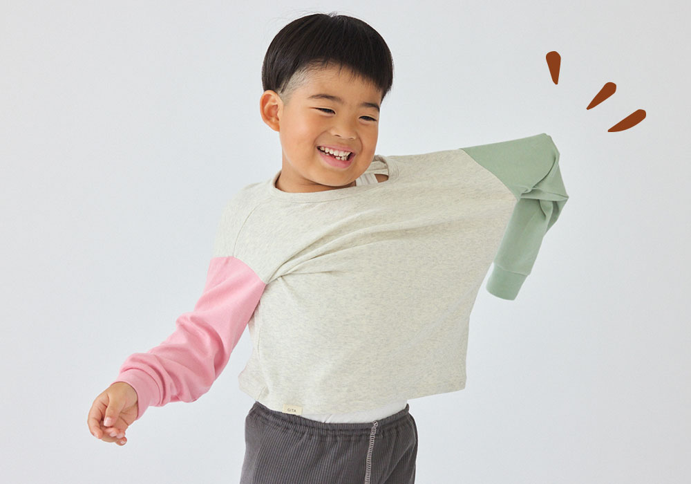 他にも、通園やおでかけに活躍する機能性ウェアや、子どもの「自分でできた!」を後押しするデザインなど、多彩なラインアップを展開。シンプルで毎日使いやすいのに、しっかりトレンド感も取り入れているから、子どもは快適に過ごせて、ママ・パパにもうれしいアイテムです。そんな豊富な子ども服の中から、今回は特にママ・パパの悩みに寄り添う4つの商品を紹介します。