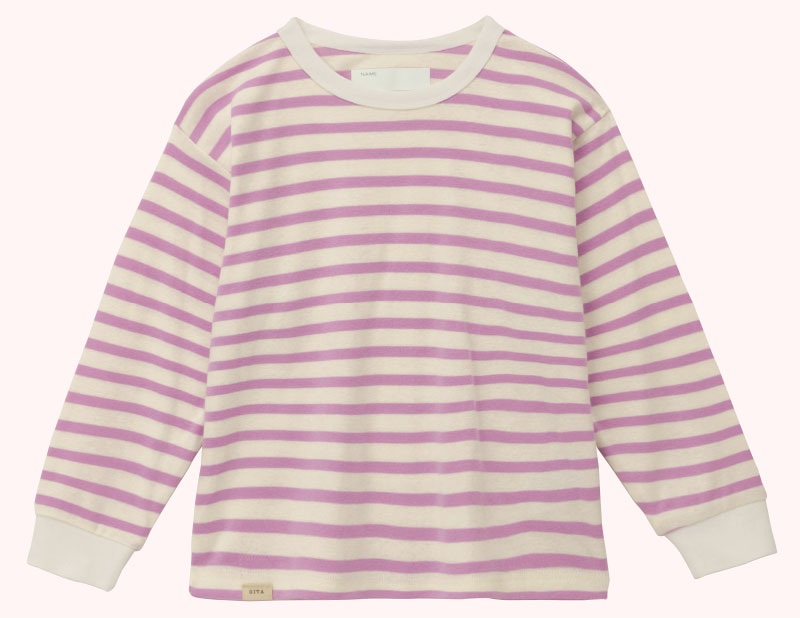 一般的なTシャツと比べ、柔らかく伸縮性のある素材を使用しています。生地がよく伸びるため、首や腕を通しやすく快適な着心地です。前後がわかりやすく、脱ぎ着もスムーズ。丈夫で洗濯もしやすく、日常の通園着やおでかけ着にもぴったり。シンプルな色柄で着回しやすく、朝の忙しい時間でも子どもが自分でさっと着られる工夫がされています。