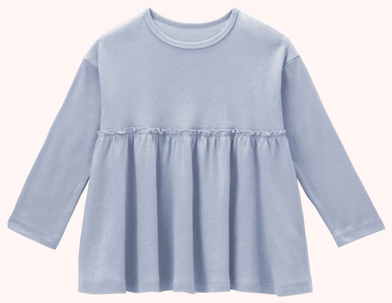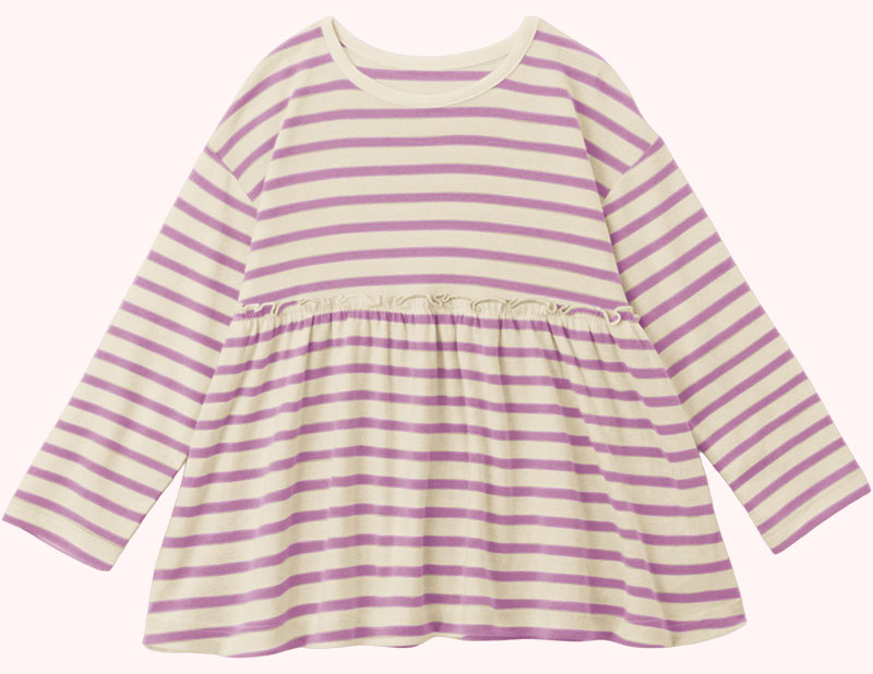 ・ソフのびフライスドロップショルダー長袖ギャザーTシャツ(ラベンダー)