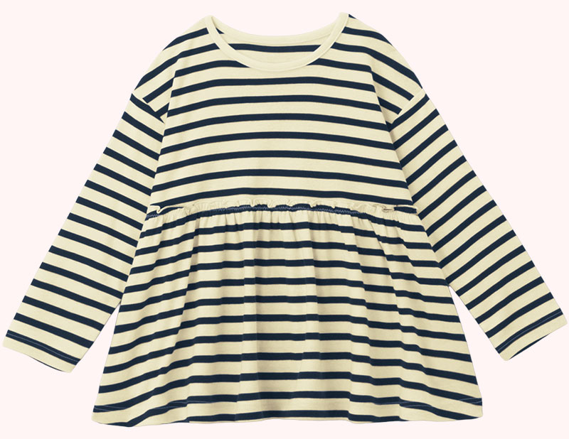 ・お着替えしやすいソフのびフライス長袖Tシャツ(ネイビーボーダー)