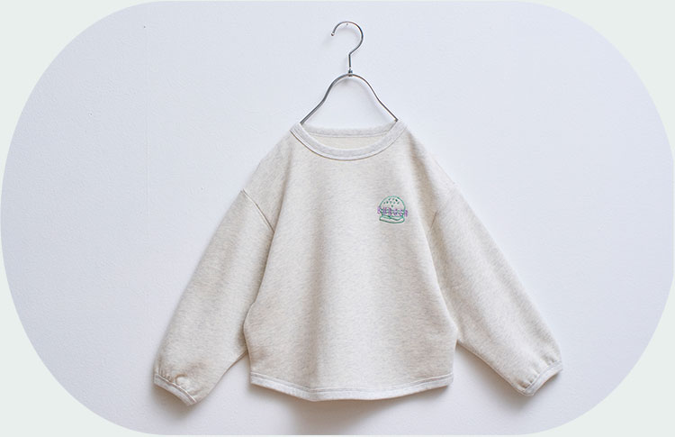 乾燥機に対応しているので、洗濯後そのまま着られるスウェットシャツ&ズボンです。さりげないワンポイントや、ゆったりシルエットでこなれた印象に。トップスはラウンドした裾のデザインもおしゃれ見えのポイント。程よい厚みの綿混裏毛素材で着心地もよく、しわになりにくいため、忙しい朝の通園や普段着にぴったりです。