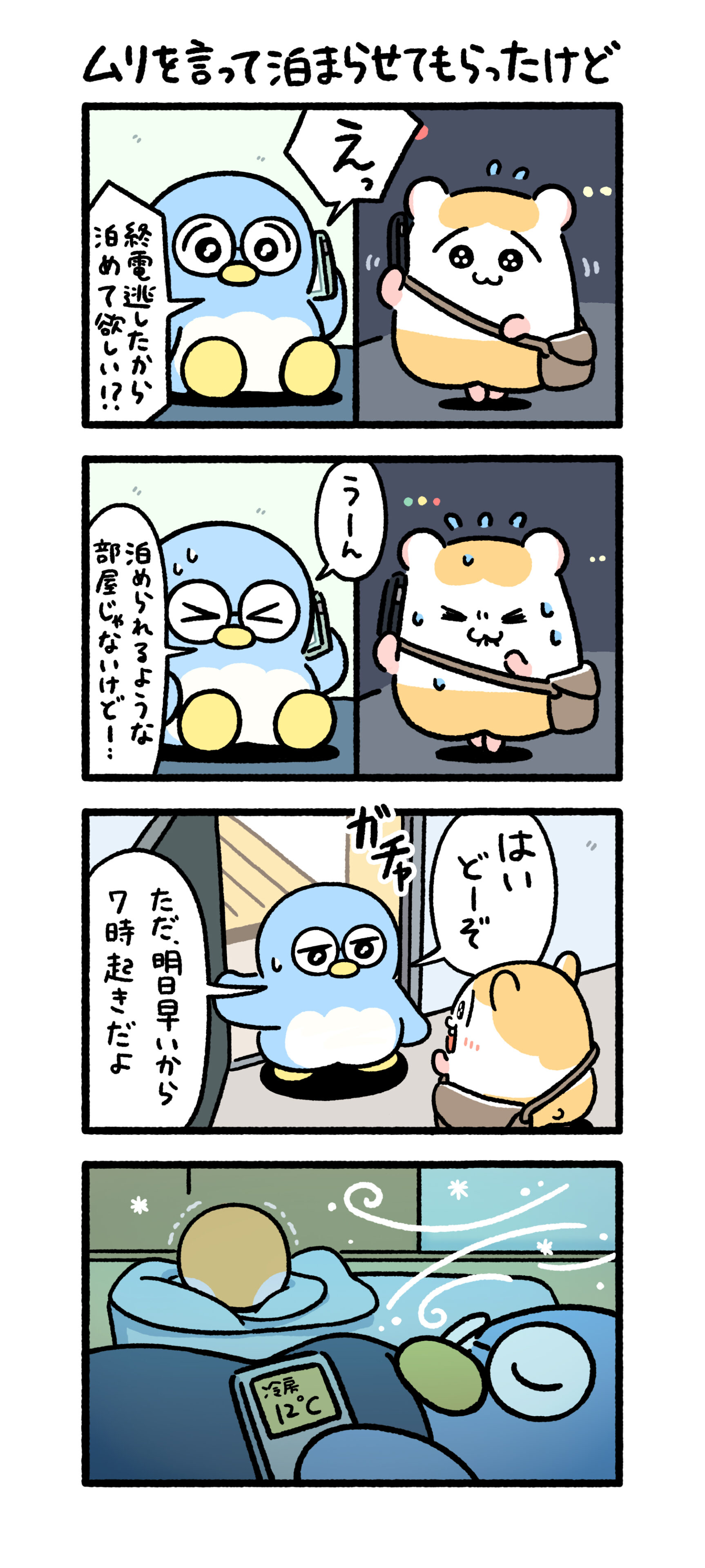 東京で一人暮らしをしているハムスター。床の薄い家に住んでいて、甘いものとビールが好き。何故か可哀想な目に遭うことが多い。