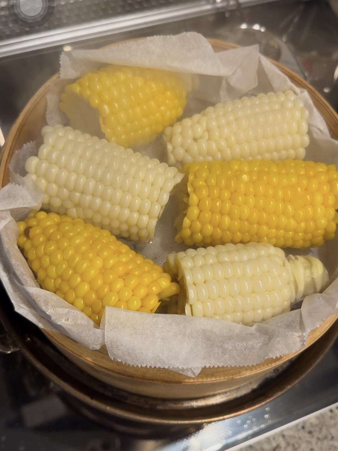 せいろで蒸したとうもろこし