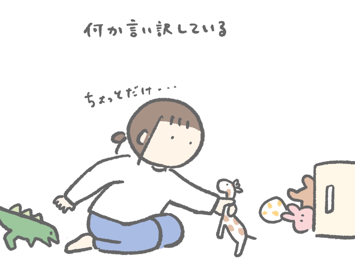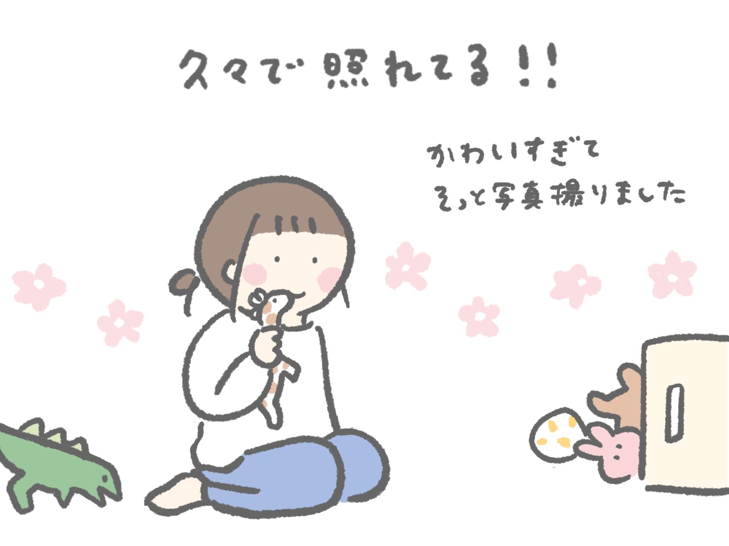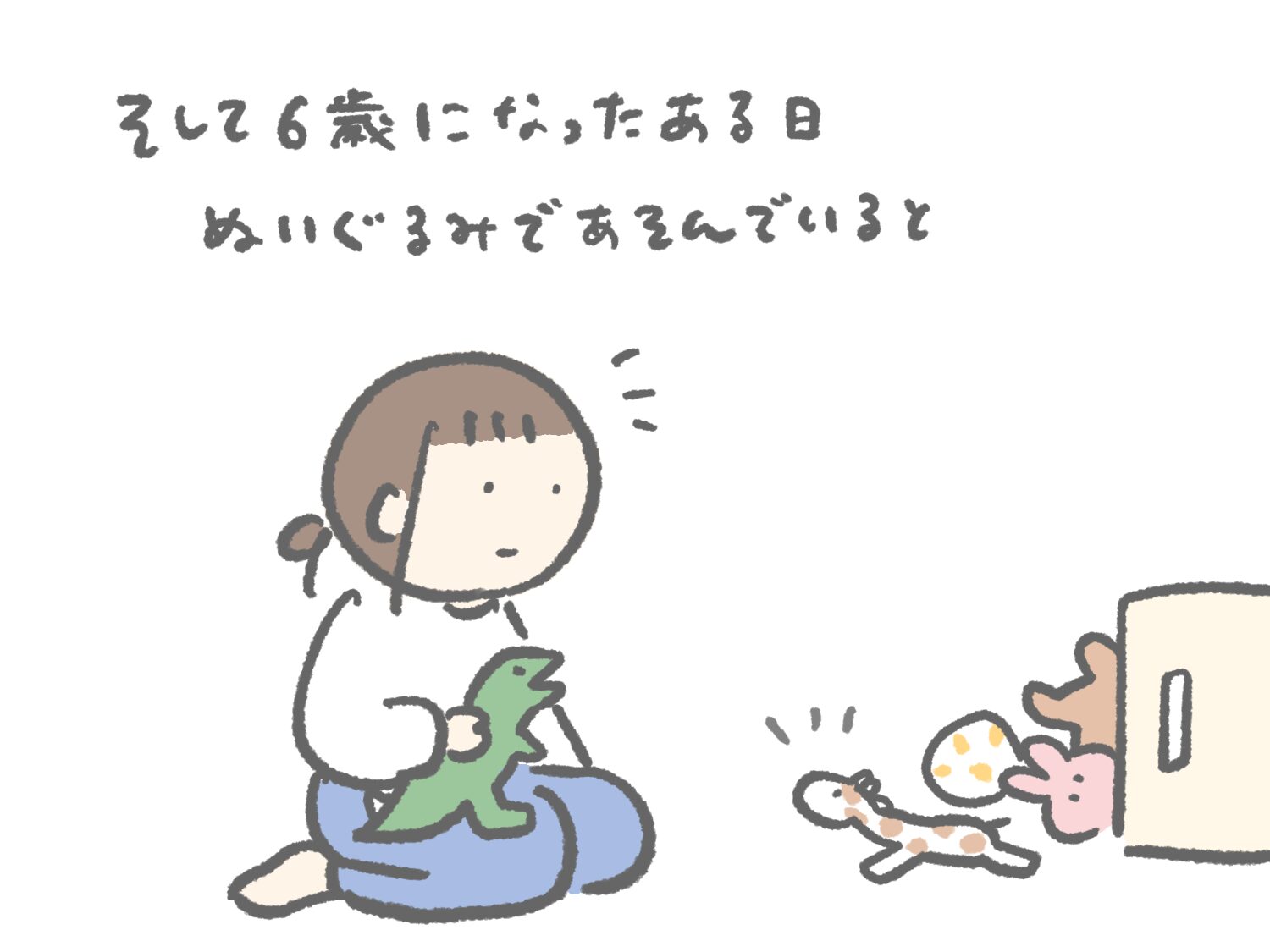 6歳になったある日、ぬいぐるみで遊んでいたらボックスの中の相棒に気がついた様子。そっと見守っていると、「ちょっとだけなら・・」のような言い訳を呟きながら、そっと相棒を手に取りました。そしてなんだか久々すぎてちょっと照れてる!?