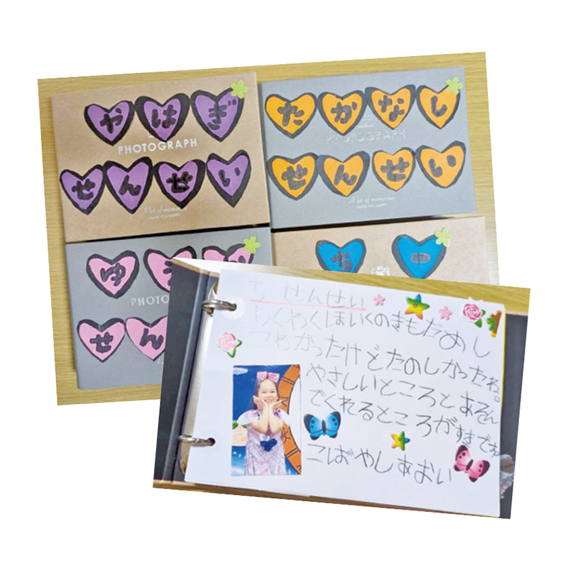 入園から今までの先生との思い出の写真を写真シール風にして、お菓子と一緒にプレゼント。当日はとてもびっくりして、泣いて喜んでくれました。先生の愛情を感じた瞬間でした(kaoruさん)