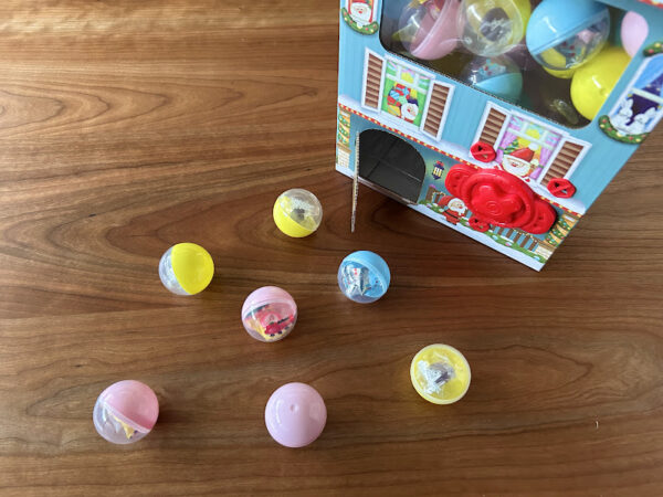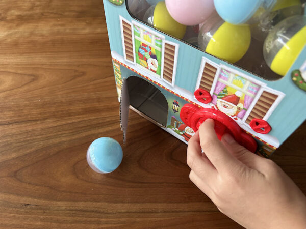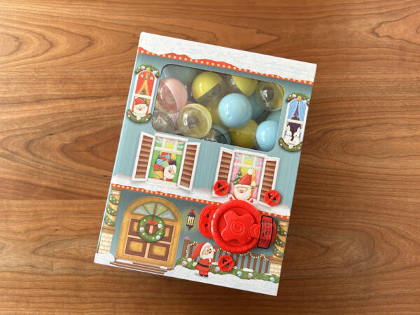 毎年いろ~んなバージョンが発売される「アドベントカレンダー」。定番のチョコ入りシンプルな紙製のものや、ブリキ製、木製、布製・・・どれにしようか悩みます。今年は木製のかわいらしい観覧車が気になる…と思っていたのですが、店頭でこちらを見かけて即買い!なんと、薄めの段ボール製のガチャガチャ!毎日ハンドルを回すとお菓子カプセルが出てくるという新しいタイプのアドベントカレンダーです。従来のタイプと違って「あと何日」がはっきりわかりにくく、回し忘れると最後に「あれ?残ってる」、逆に回しすぎて「あれ?足りない」となることもありそうですが、それも含めて楽しめそうなカレンダーです。