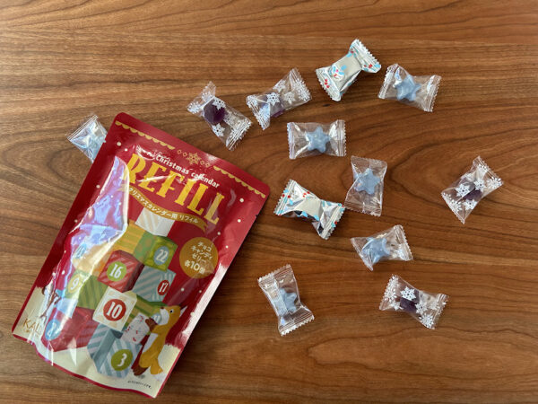 以前購入したブリキ製のカルディのアドベントカレンダーや、しっかりした厚紙製だった頃の無印良品のアドベントカレンダーを毎年使うので、この「リフィル」はかなりお役立ちです。今年は数が多くなった分、ちょっと内容がさみしくなった気もしますが・・・多めに入っているのは助かります!
