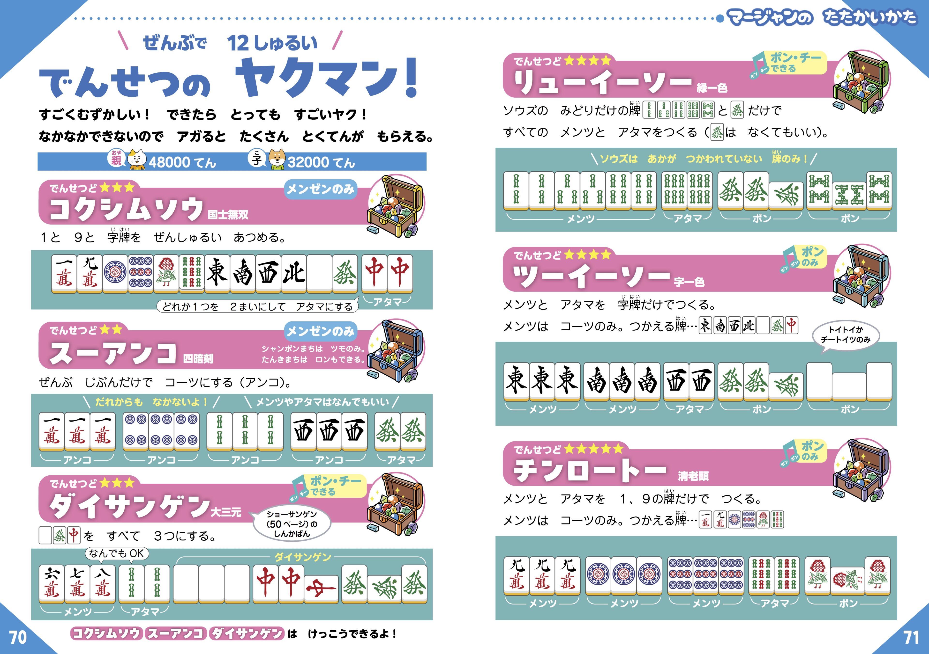 『5さいからはじめるマージャン』の出版の話をいただいたとき、ちょうど娘が5歳で、当事者目線で子どもにマージャンを好きになってもらうきっかけがこの本を通して作れる、と思いました。子どもがどんな内容だったら興味を持ってくれるかを考えて、全ページラフから書きましたし、マンガが付いているのですが、その内容を考えたり、カラーデザインも編集の方と相談したりしながら隅々までこだわりました。私の中でも思い入れの強い一冊です。