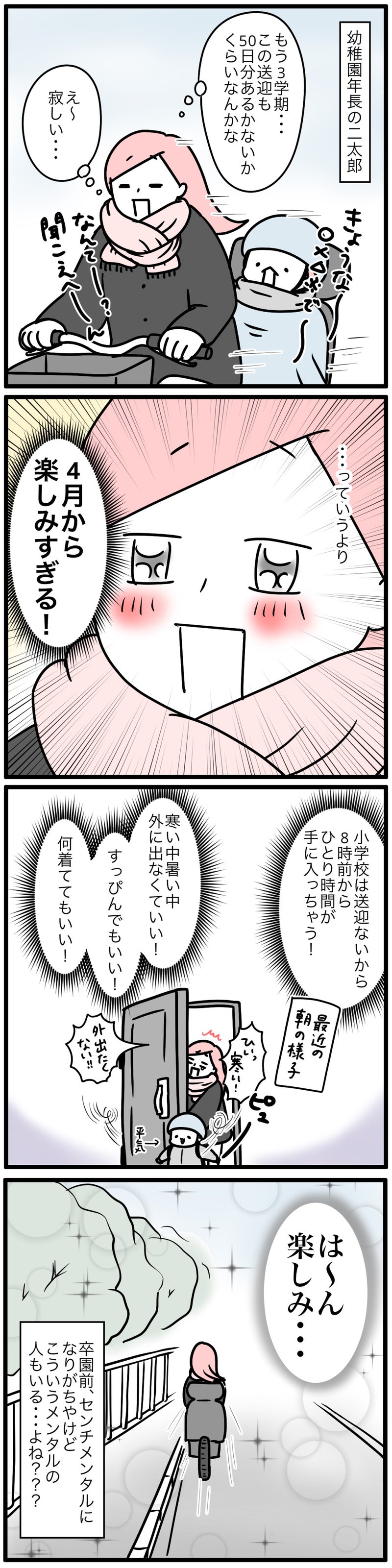 …ということで、当時から3年経った今、送迎のない小学生母を満喫しております!一人時間も増え(まあ仕事時間になるんやけども)、着替えも化粧もゆっくりでよくて、寒い中、暑い中、無理して外出しなくてもいい!最高! これからもインドア生活満喫します。笑