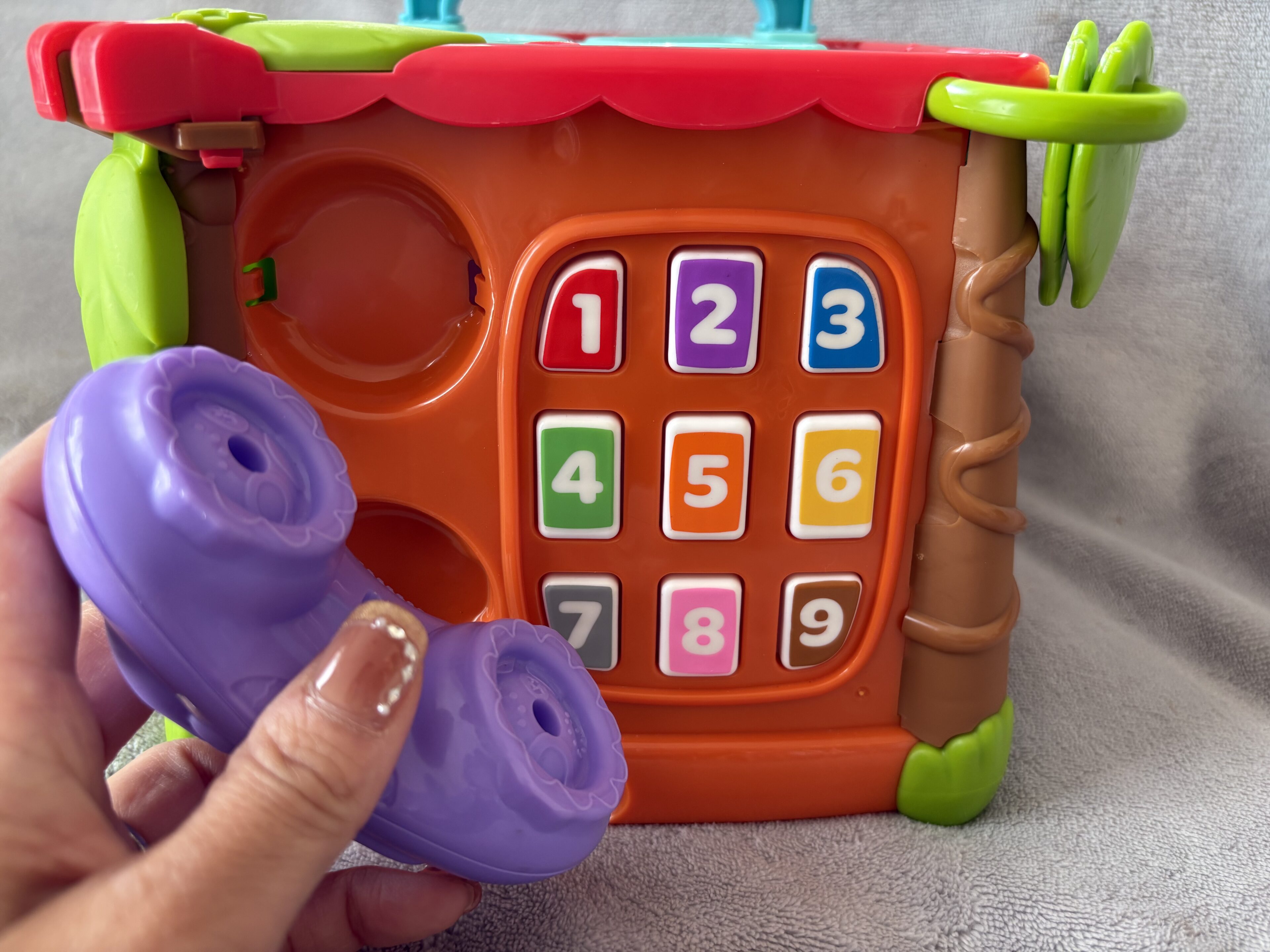 押したダイヤルの色や数をバイリンガルでおしゃべり。色と数を覚えられる。