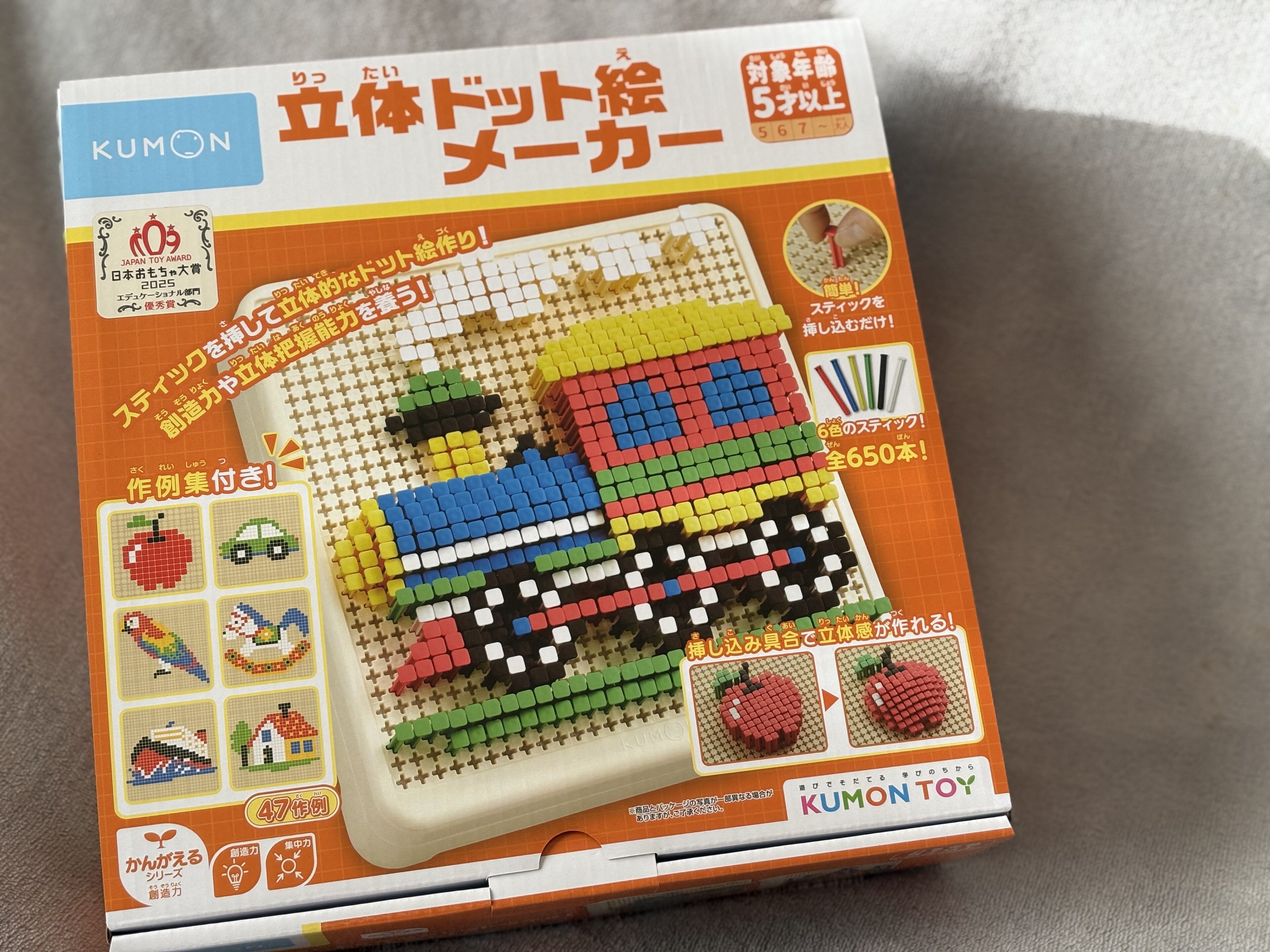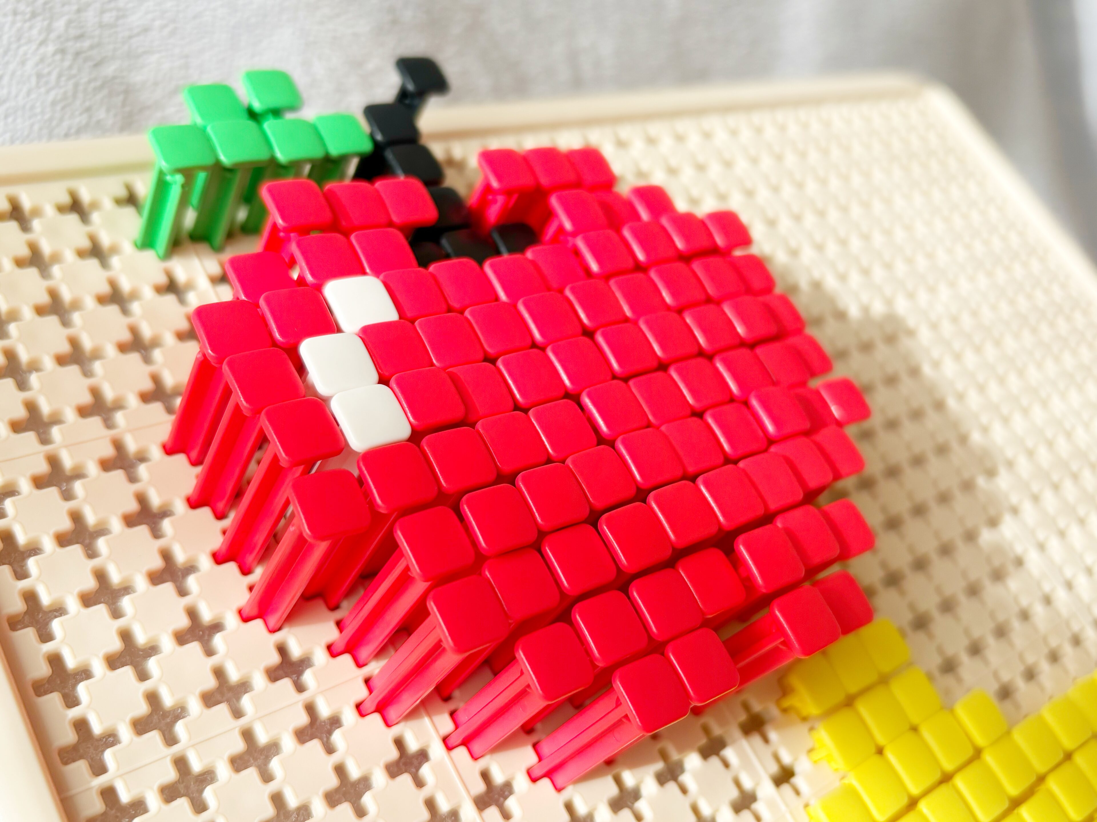 日本おもちゃ大賞2025にてエデュケーショナル部門優秀賞を受賞!カラーのスティックを本体の穴に挿して立体的なドット絵作りができる玩具です。スティックのカラーは6種類、全650本。挿し込みの深さや組み合わせを変え、試行錯誤を積み重ねながら立体把握能力を鍛えたり、指先を動かす練習にもなります。