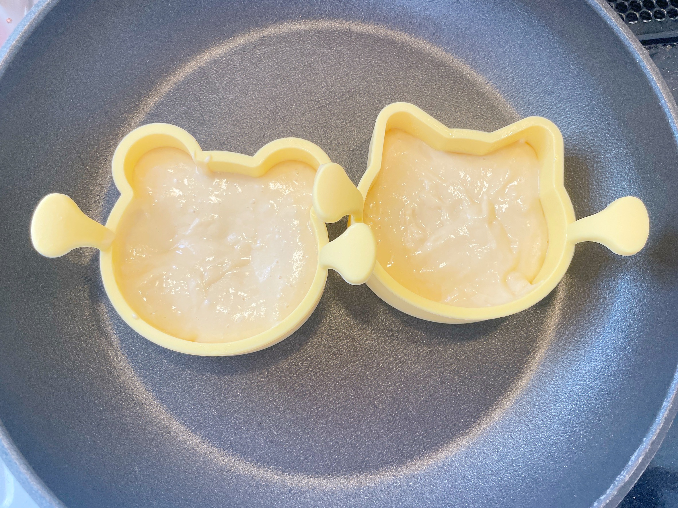 お店で食べるような厚焼きホットケーキが作れるリング。 シリコーン製なので持ち手が熱くなりにくくなっているのもポイント。