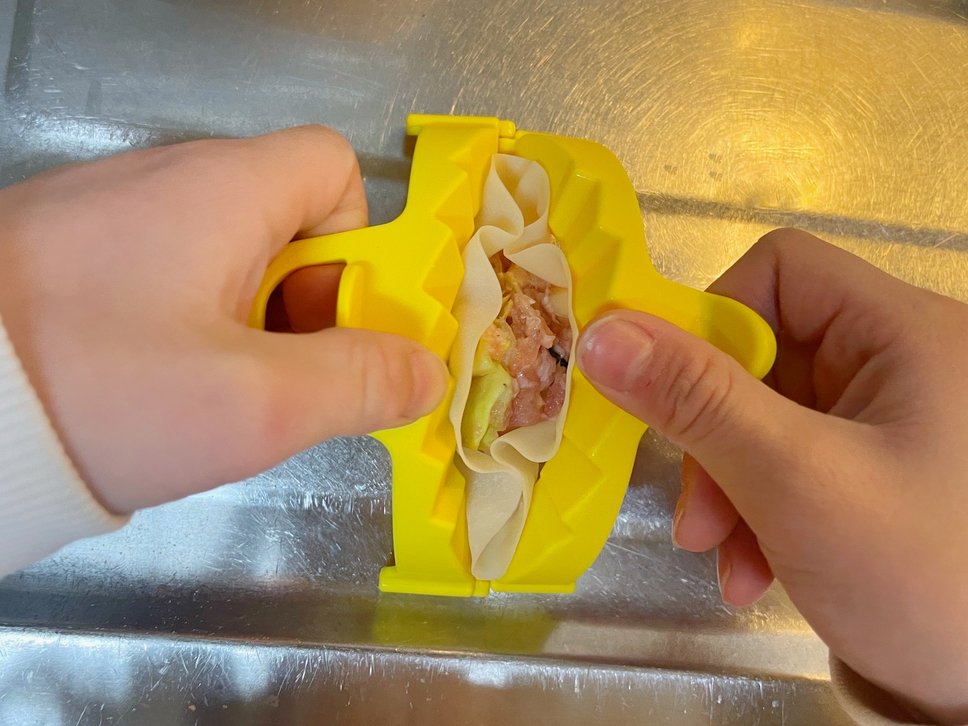 餃子の皮に具をのせて、型でパタンとはさむだけでふっくらした形ができるから、包むのが苦手でも上手に仕上がります!「できた!」の達成感が味わえますよ♪約10×12cmとコンパクトで軽いので、子どもの手でも握りやすい設計。さらに食洗機も対応なので後片付けも楽ちんです。