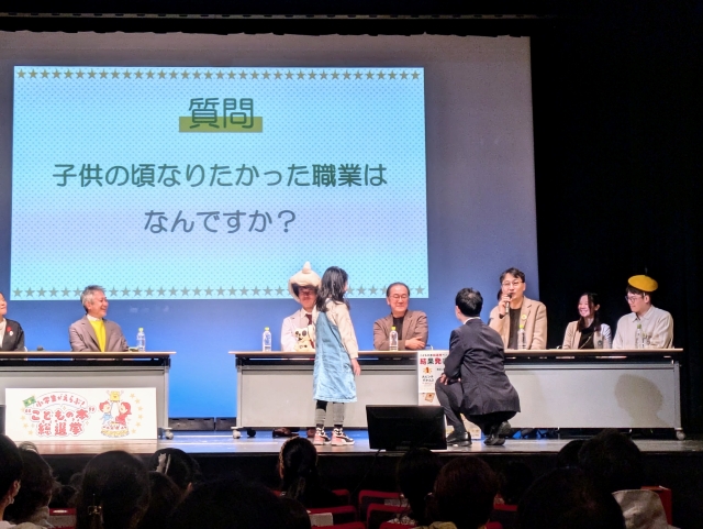 イベントでは会場に集まった子どもたちが、ステージ上の作家さんたちに直接質問できるトークコーナーが行われました。緊張しながらマイクを持つ子、事前に考えてきた質問を一生懸命読み上げる子など、子どもたちのまっすぐな姿に、作家さんたちも優しい表情で応じていました。