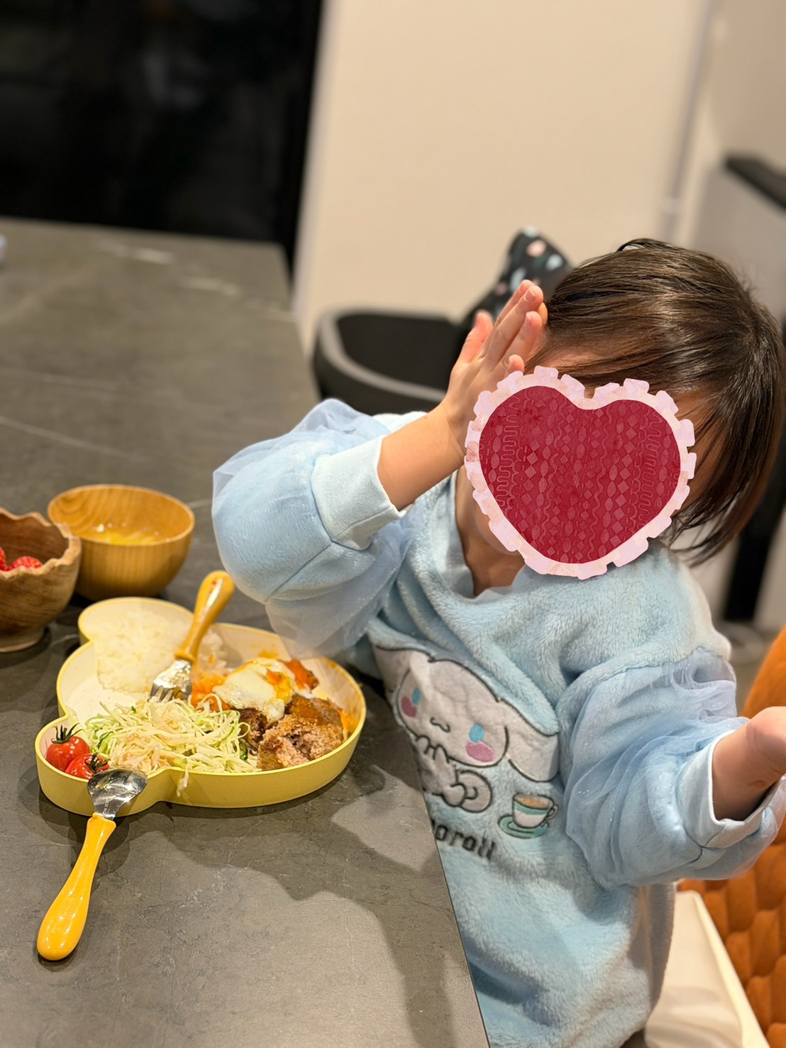 私たち夫婦は、食べることが大好き。子どもたちにも食事はしっかり取ってほしくて、日々工夫しています。野菜もおいしく食べてほしいと思い、例えば焼肉屋さんではサンチュでお肉をくるんで「巻いたら楽しいよ〜」と勧めてみたり、ピーマンは塩昆布やゴマ油を使って普段よりも濃いめに味付けをしたり…。やっぱり集中力が長く続かないこともよくあるので、そんな時のために、ご飯のお供をたくさん用意してあります。ポイントは最初から出すのではなく、飽きてきたタイミングで「ふりかけとか梅干しとか海苔があるけど、どれか足す?」と選んでもらうこと。おかずも、途中でソースや調味料を足して味変します。先日長女が、まだご飯が残っているのにお菓子を食べたがる様子を見せていたのですが、「あと10口食べたら、全部食べられちゃうかな!?」とちょっと違う方向に意識が向くようにして、完食してもらいました(笑)