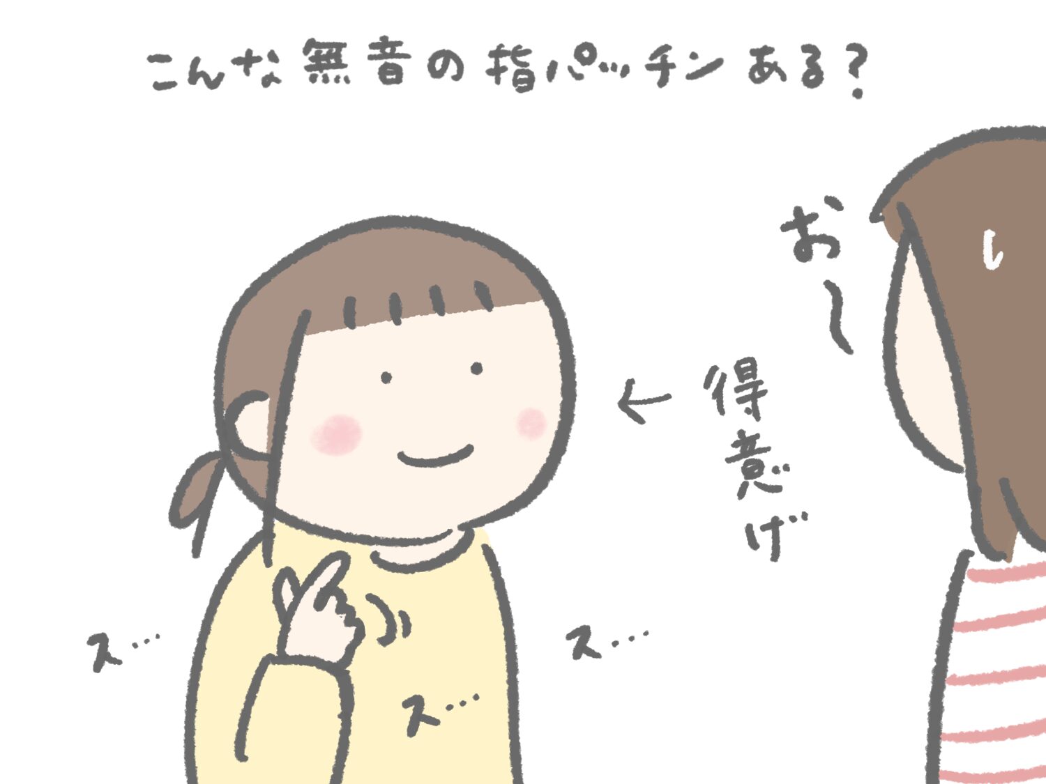 小1になった息子が「かあさん、これできる?」と言って、指パッチンを披露してくれました。ただ、クロスした指から鳴るのは「ス・・・ス・・・」というわずかな音のみ。こんな無音の指パッチンある?笑 と思いながらも、得意げな本人を目の前にしては「お〜」しか言えませんでした。