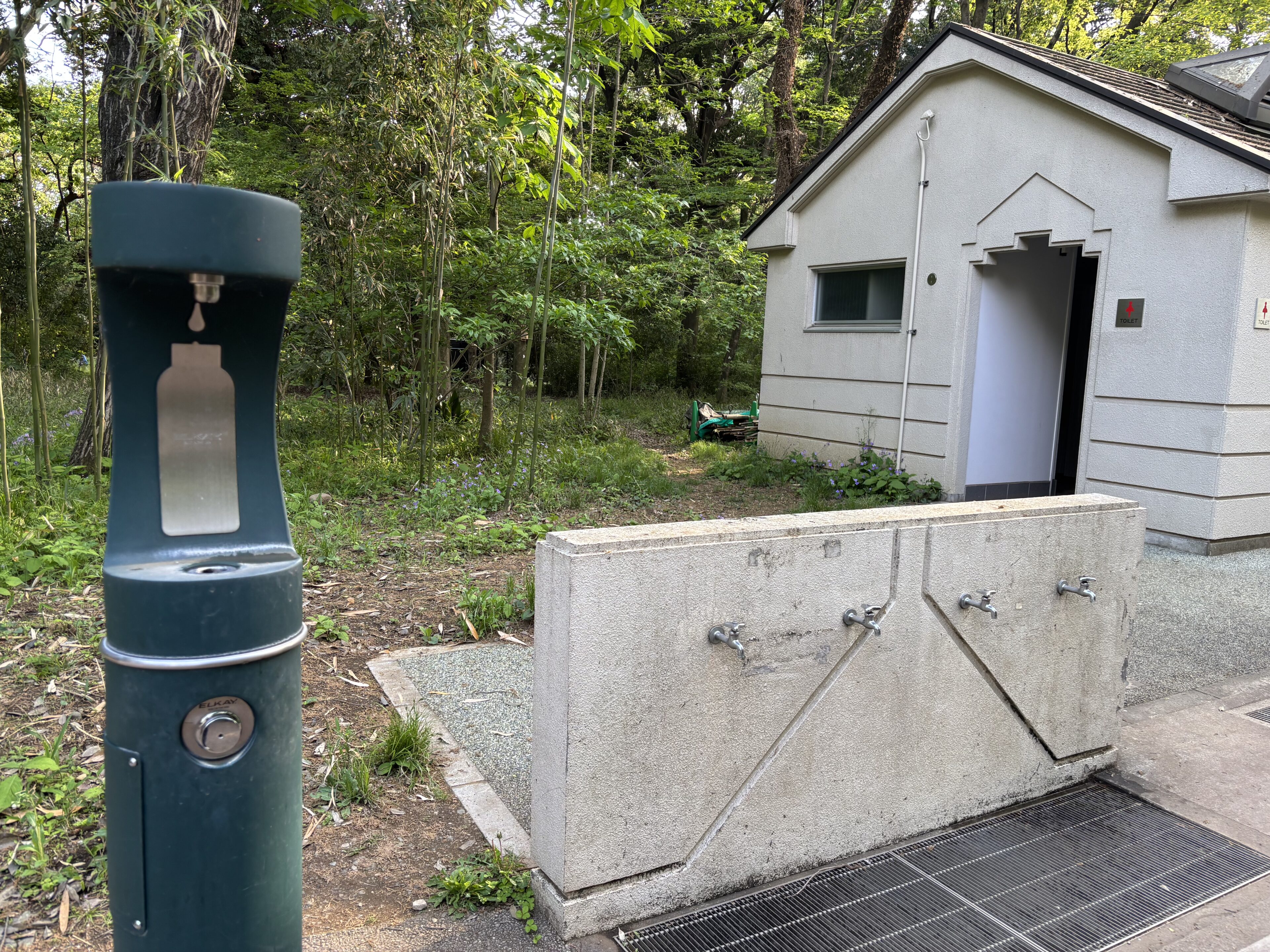 トイレは休憩所に向かって左奥側にあります。水筒に水を汲めるウォーターサーバーもあって、便利です。