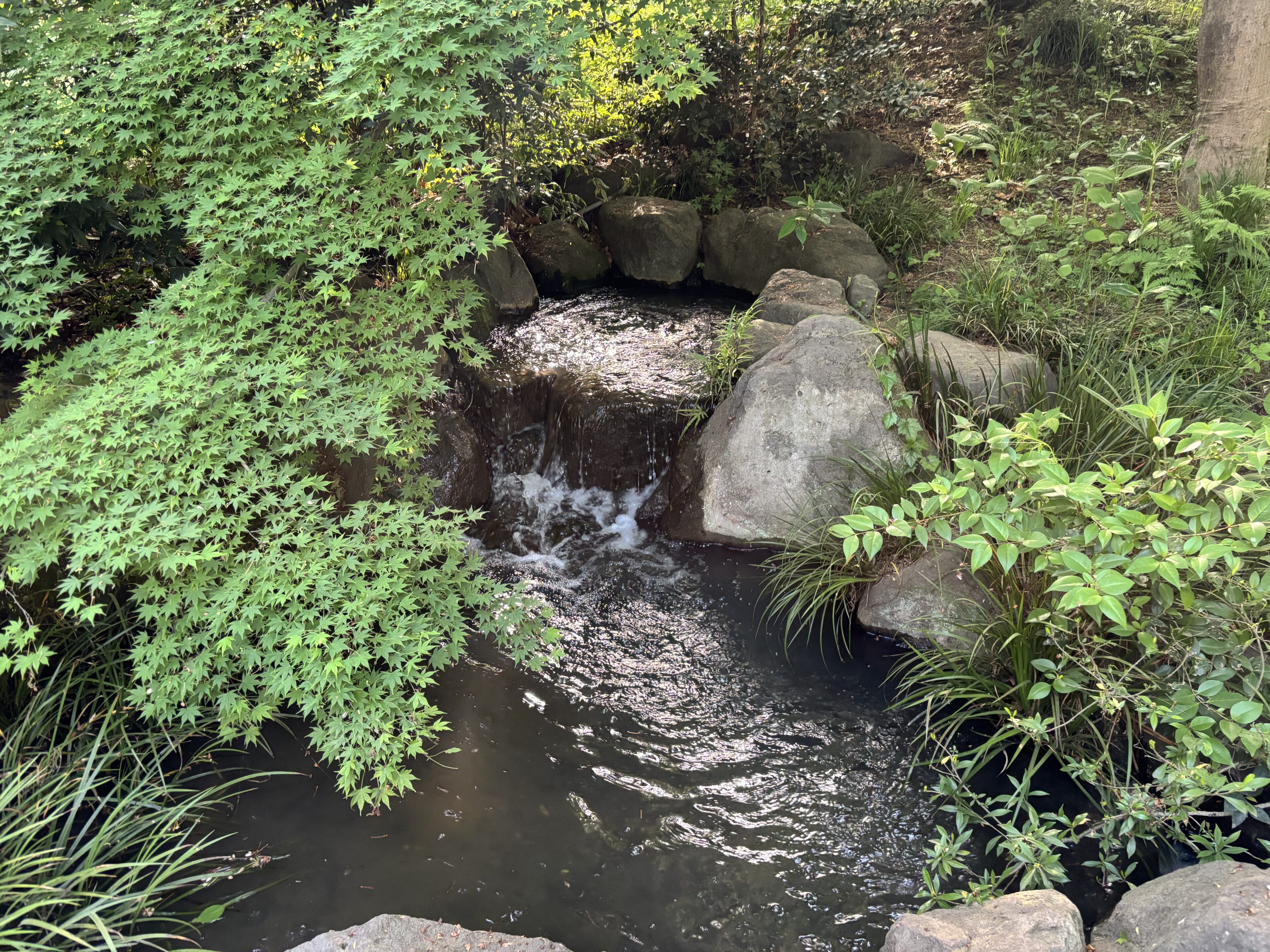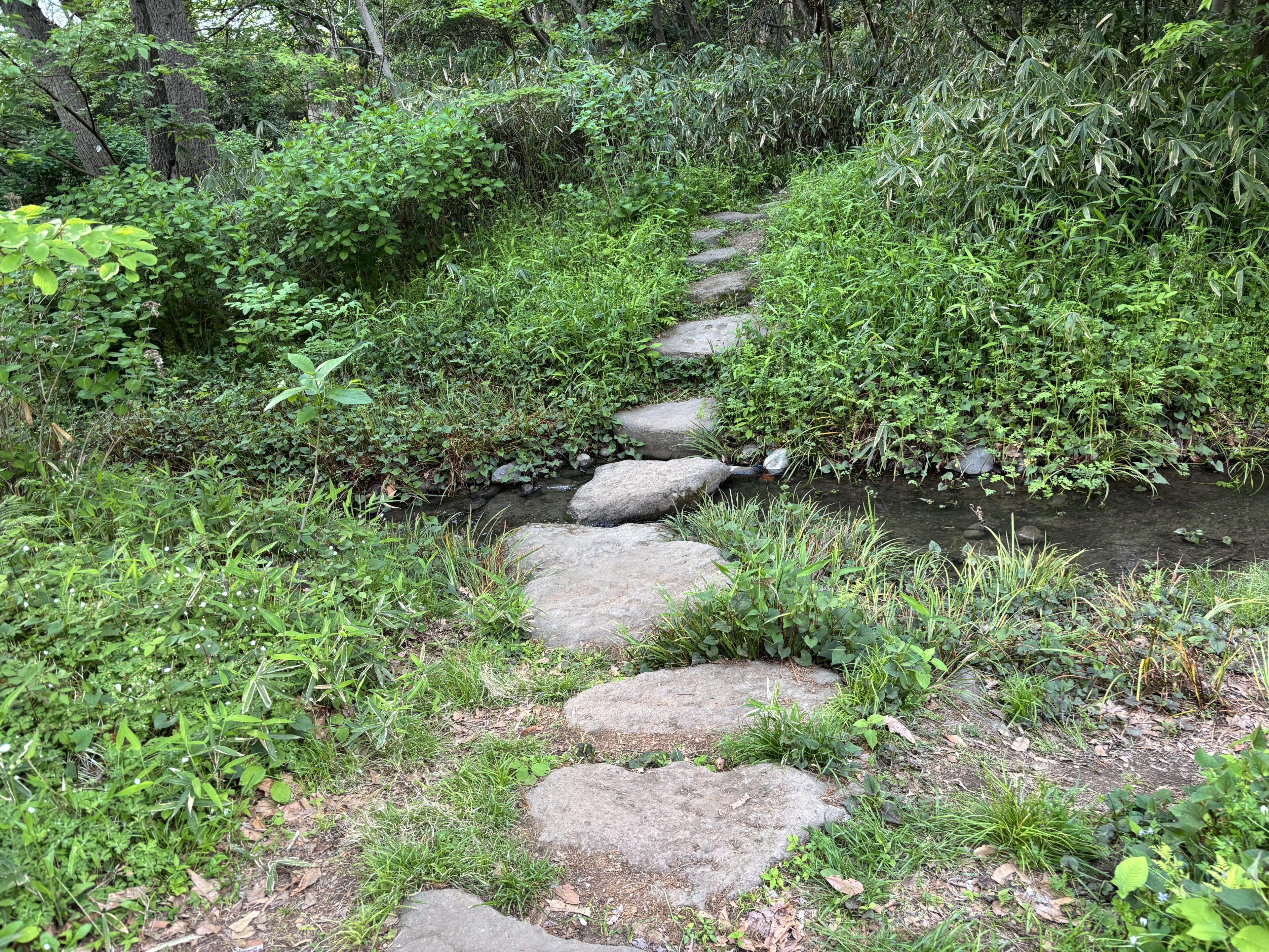 橋の上から川面をのぞいたり、小さな滝を眺めたり、なだらかな丘を登ったりと、ほどよい起伏も楽しめます。木立が高く、日差しの強い日でも涼しく過ごせるのも嬉しいポイントです。