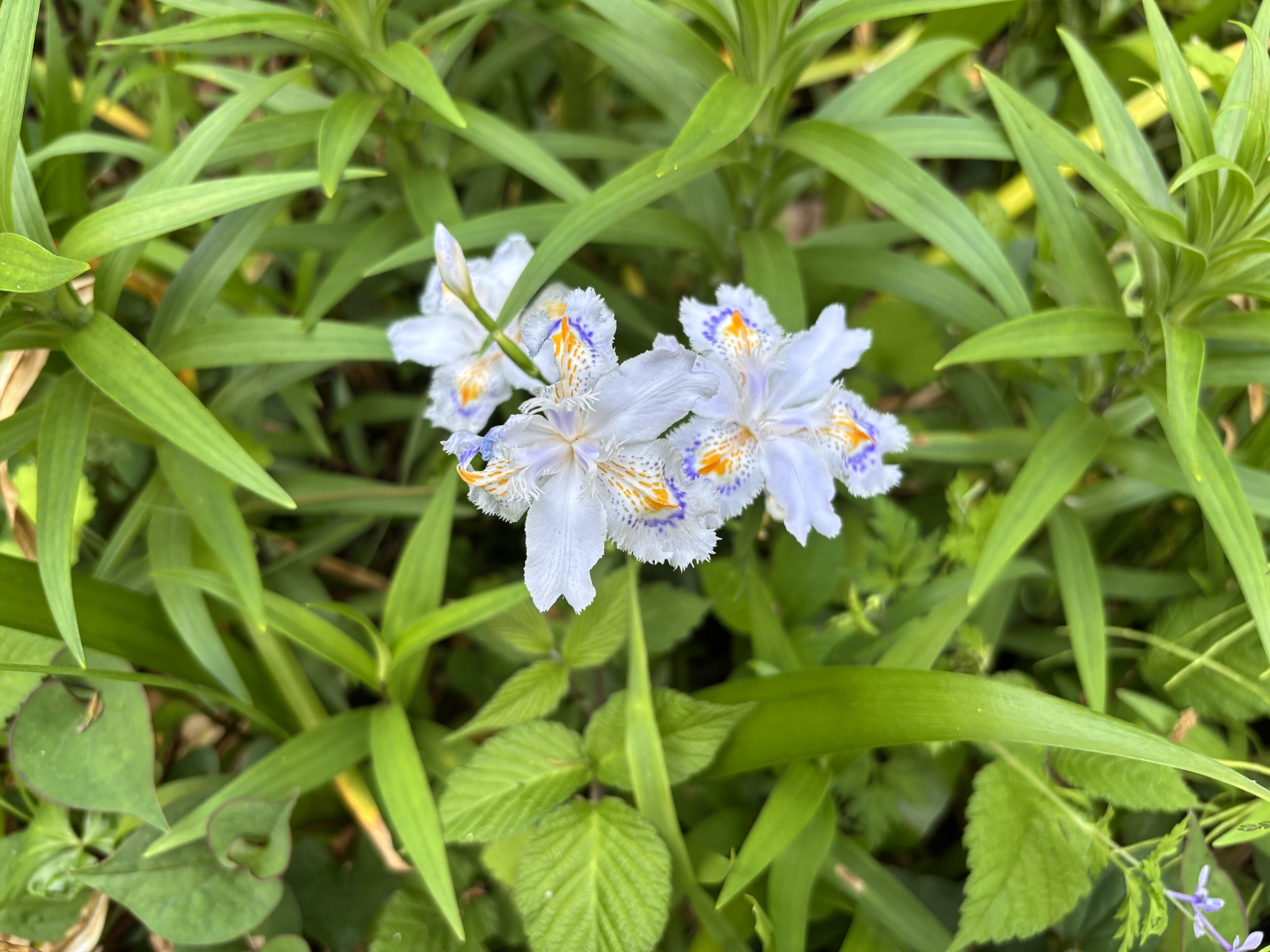 季節ごとの草花を見るのも楽しみのひとつ。春は、水場でよく見られるアヤメ科の花がとても綺麗です。白、紫、黄色と見つけやすい色の花が多く、子供と一緒に観察するのも楽しいです。