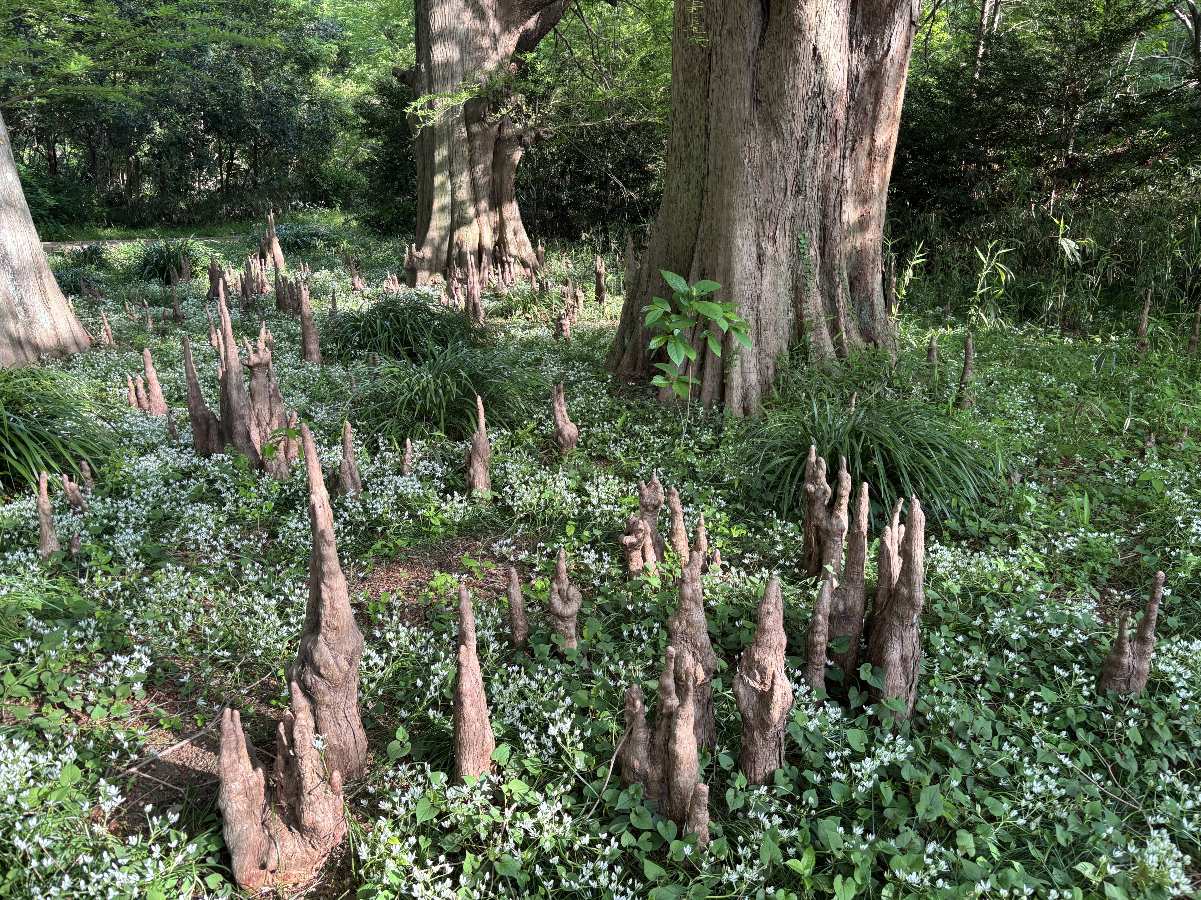 木の周りにたくさん生えているツララのようなものは気根と呼ばれており、ラクウショウの根から生えているものです。地上や水面に出て、酸素を取り入れる働きをしています。これだけ大きく、綺麗に生えている気根は大変珍しいものだそうです。写真には収まり切らないサイズ感と荘厳さは、ぜひ現地で見ていただきたいです。