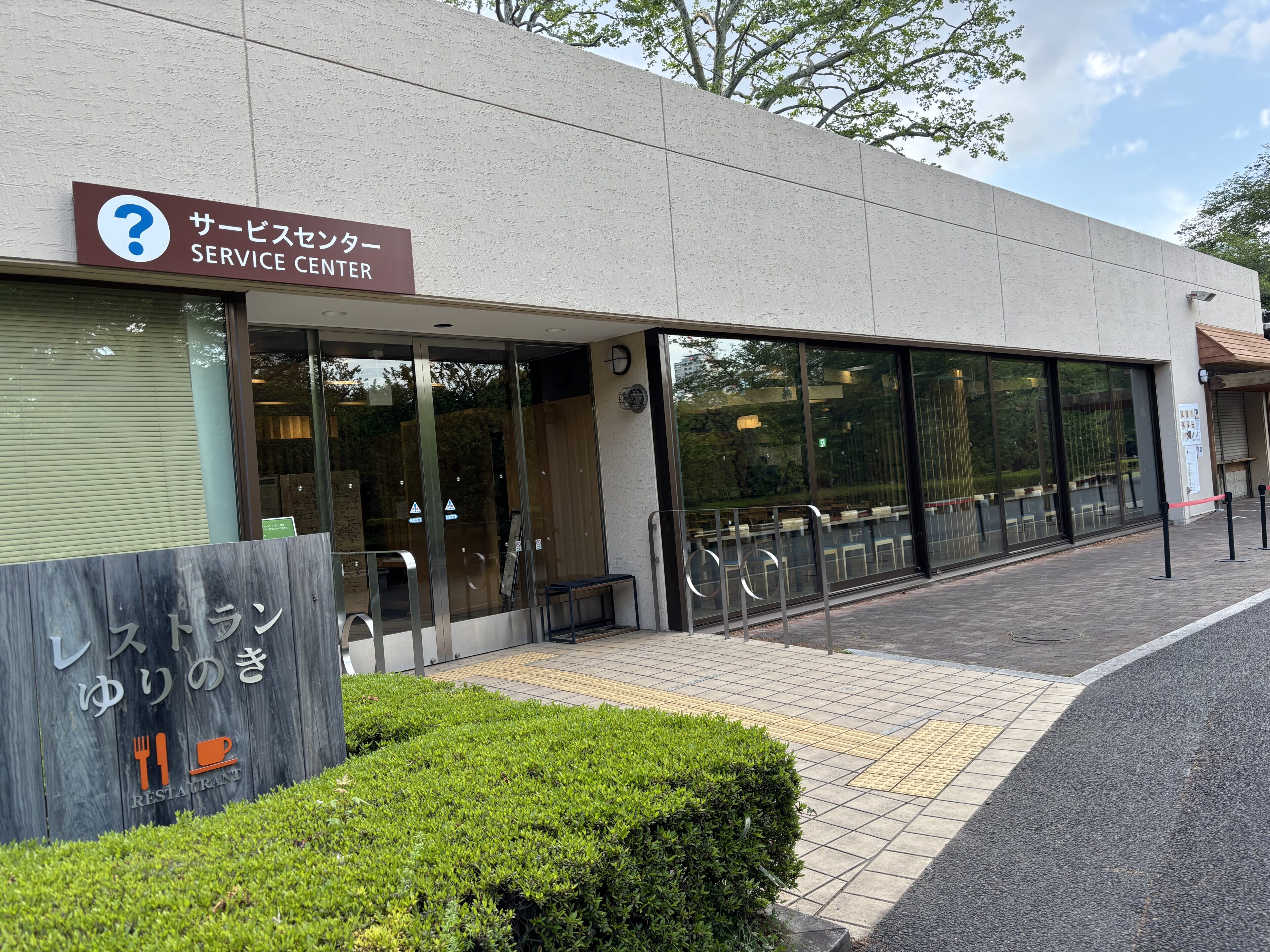 たくさん歩いたあとは、お待ちかねのランチタイム。森を出て少し歩くと「レストランゆりのき」のサインが見えます。建物にはレストランもありますが、無料の休憩所として開放されているので、室内とテラスのどちらも使えます。お天気が良ければ、ぜひテラスでゆっくりと手作りサンドイッチを広げましょう。