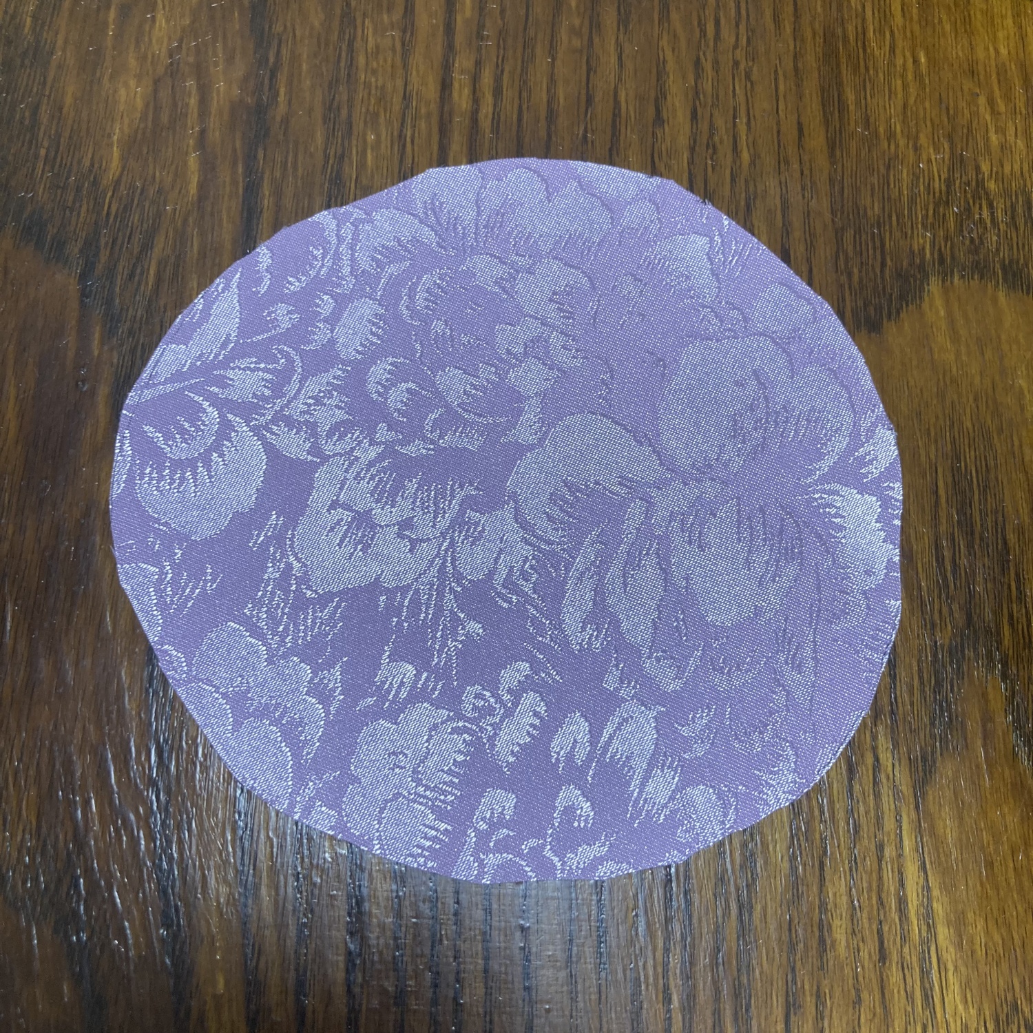 花びら用の生地を縫い代込みで、直径10cmの円の型紙を作り、6枚裁断する。