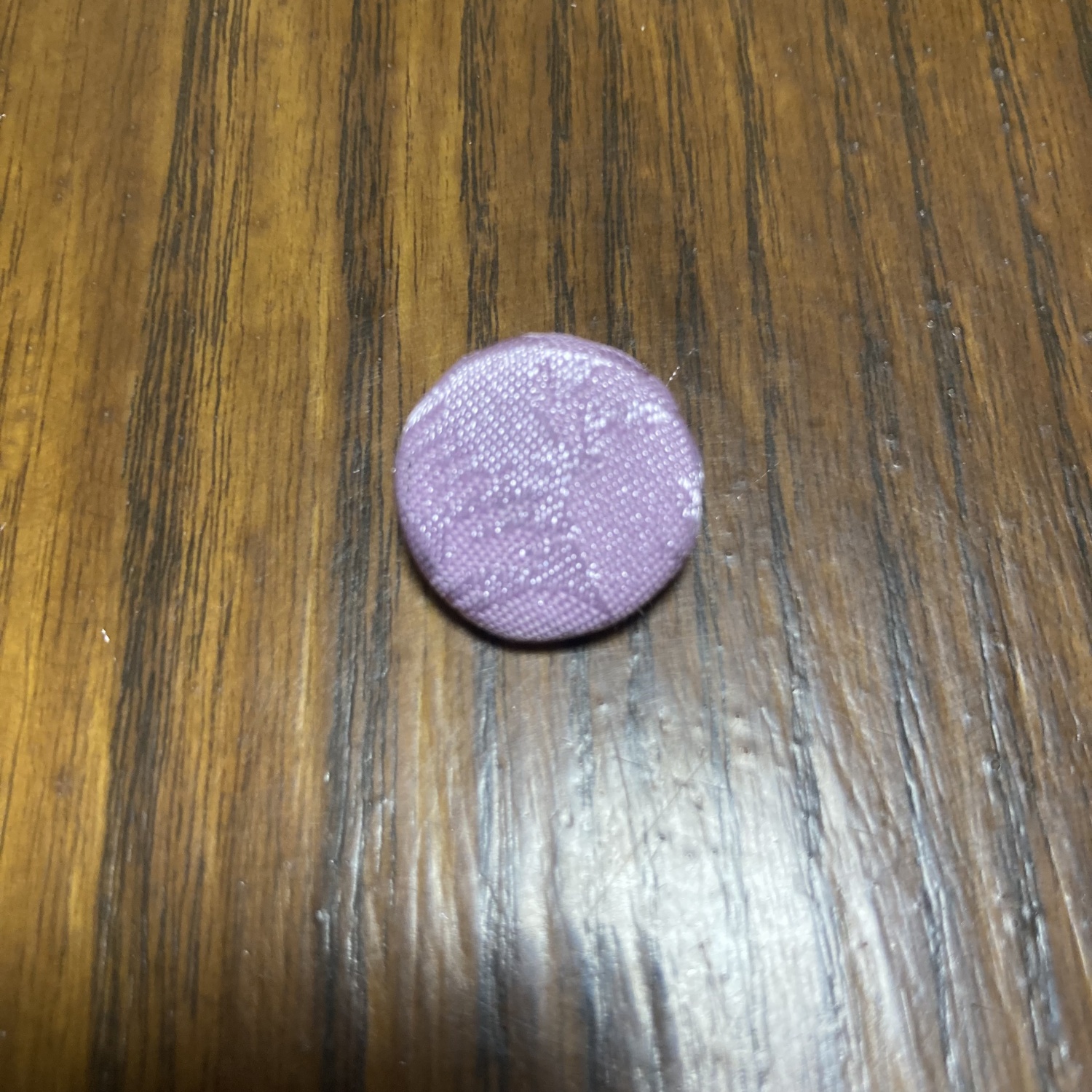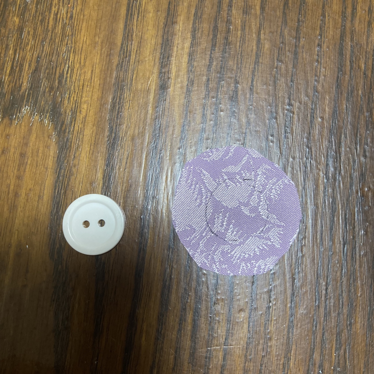 ボタンを生地に合わせ、ボタンサイズから5mm程大きく円を描き、生地を裁断する
