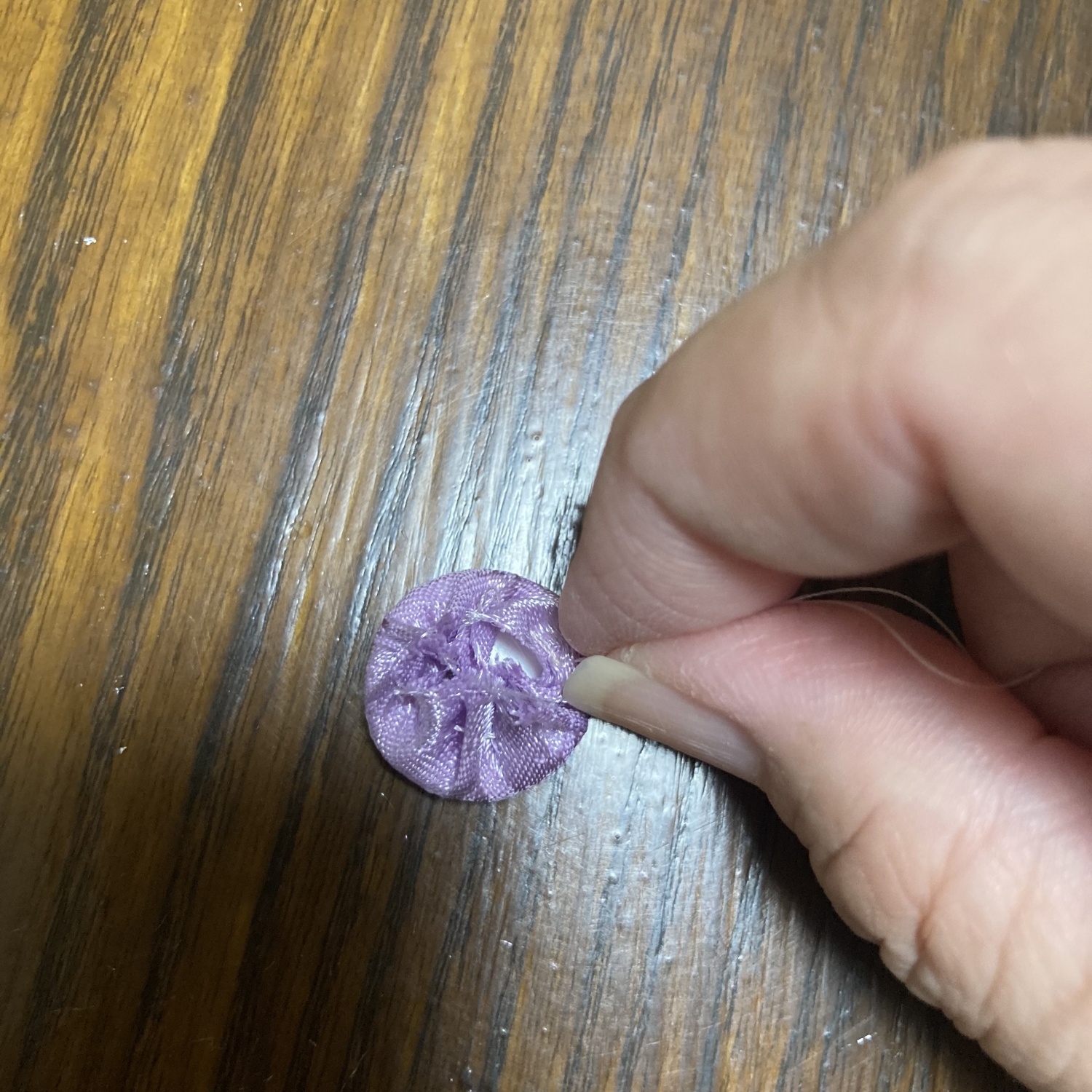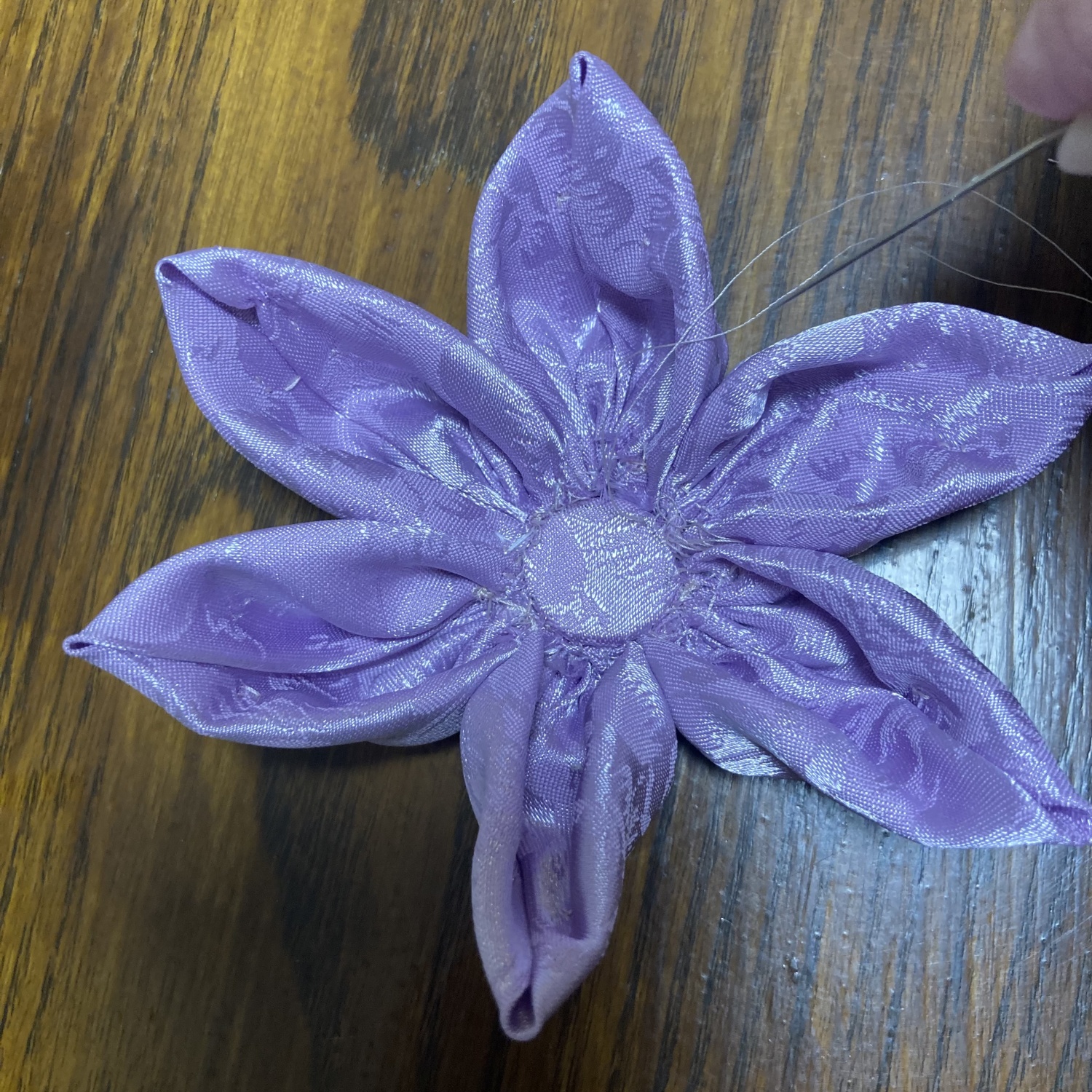 花の裏側をばらけない様に縫いまとめ、ベースの花モチーフの完成