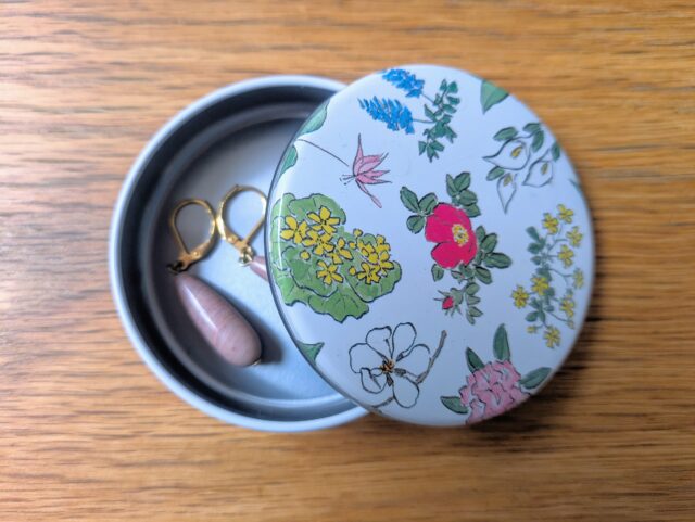 旅行や帰省の際、アクセサリーをなくさずに持ち歩きたいときにも缶が便利。フタ付きで中身が飛び出さず、つぶれにくいのでバッグの中でも安心です。