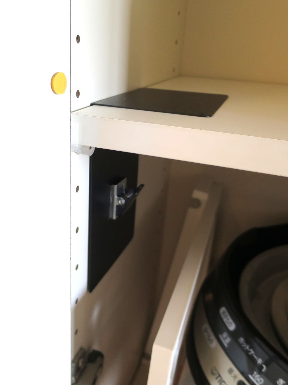 棚板と壁のすき間にブックエンドを差し込んだ状態