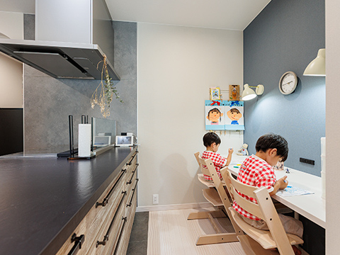 さらに、家族で料理を楽しめる“ひろびろキッチン”も標準仕様。親子で並んで調理をしたり、盛りつけを手伝ったりと、子どもがお手伝いしやすい動線が整っているのも特長です。