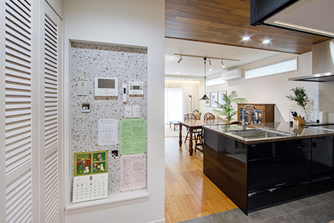 ペーパーレス化が進んでいるとはいえ、実際には学校から毎週のように配られるお便りや提出物があり、「プリントを置く場所を作っておけばよかった」という声が目立ちました。キッチン横などに“貼って管理できるスペース” を用意しておくと、家族で情報を共有しやすく、提出物の見落としも防ぎやすくなります。