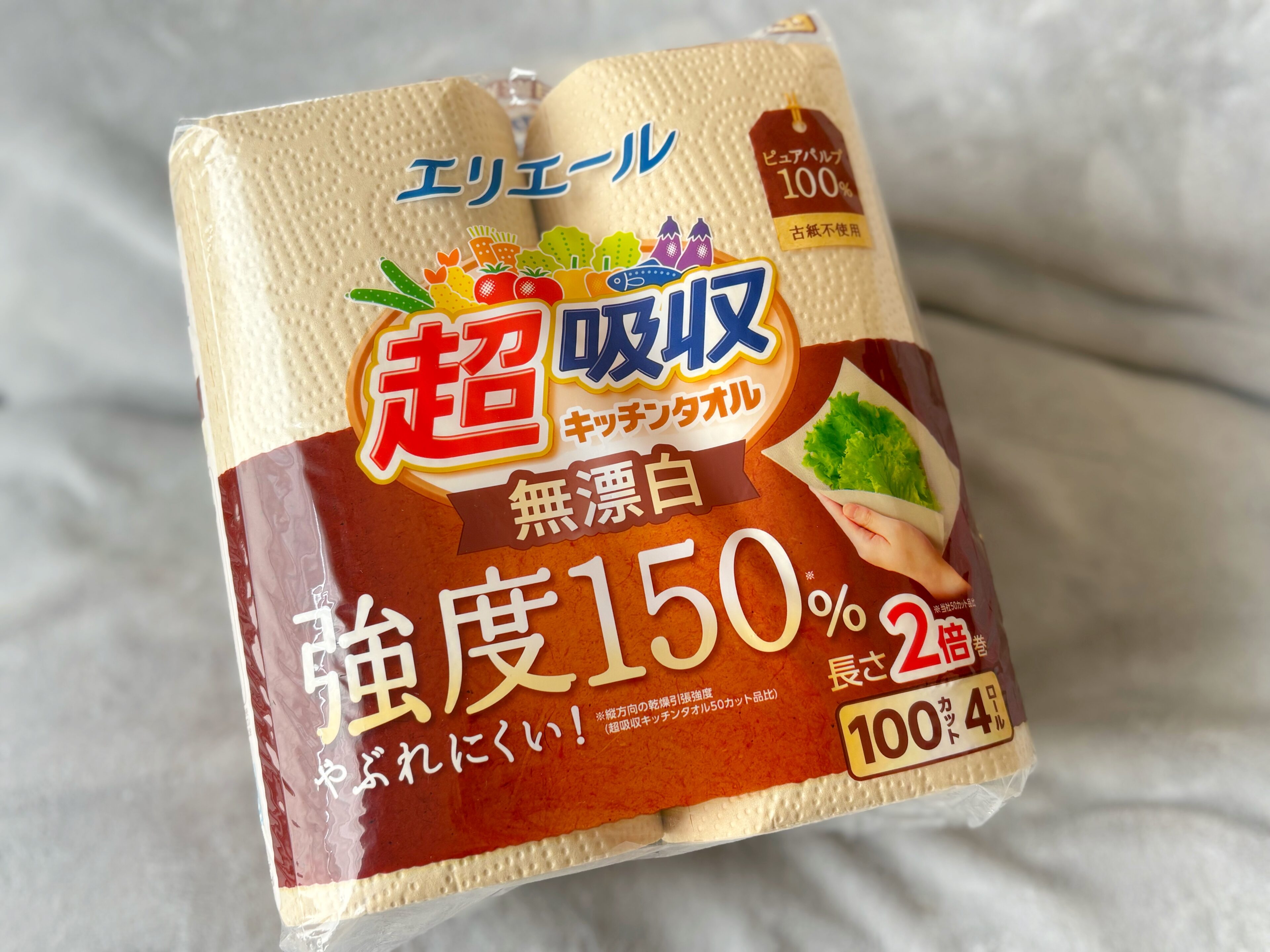 シート強度150%※1の丈夫で破れにくい無漂白タイプのキッチンタオル「エリエール 超吸収キッチンタオル 無漂白」は大容量タイプが新発売に。破れにくくしっかり吸収してくれるので、揚げ物の油切りはもちろん、そのままコンロまわりの掃除までこれ1枚でOK。無漂白タイプで食品にも使いやすく、安心してキッチンで使えるのも魅力です。