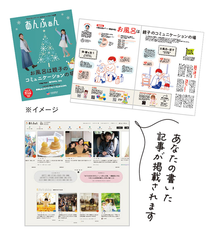 子育てメディア「あんふぁん」「ぎゅって」、公式Web「&あんふぁん」では、ママ・パパ向けの記事を執筆するライターを募集しています。編集・ライター経験のある方、大歓迎です。ぜひ、お問い合わせください。