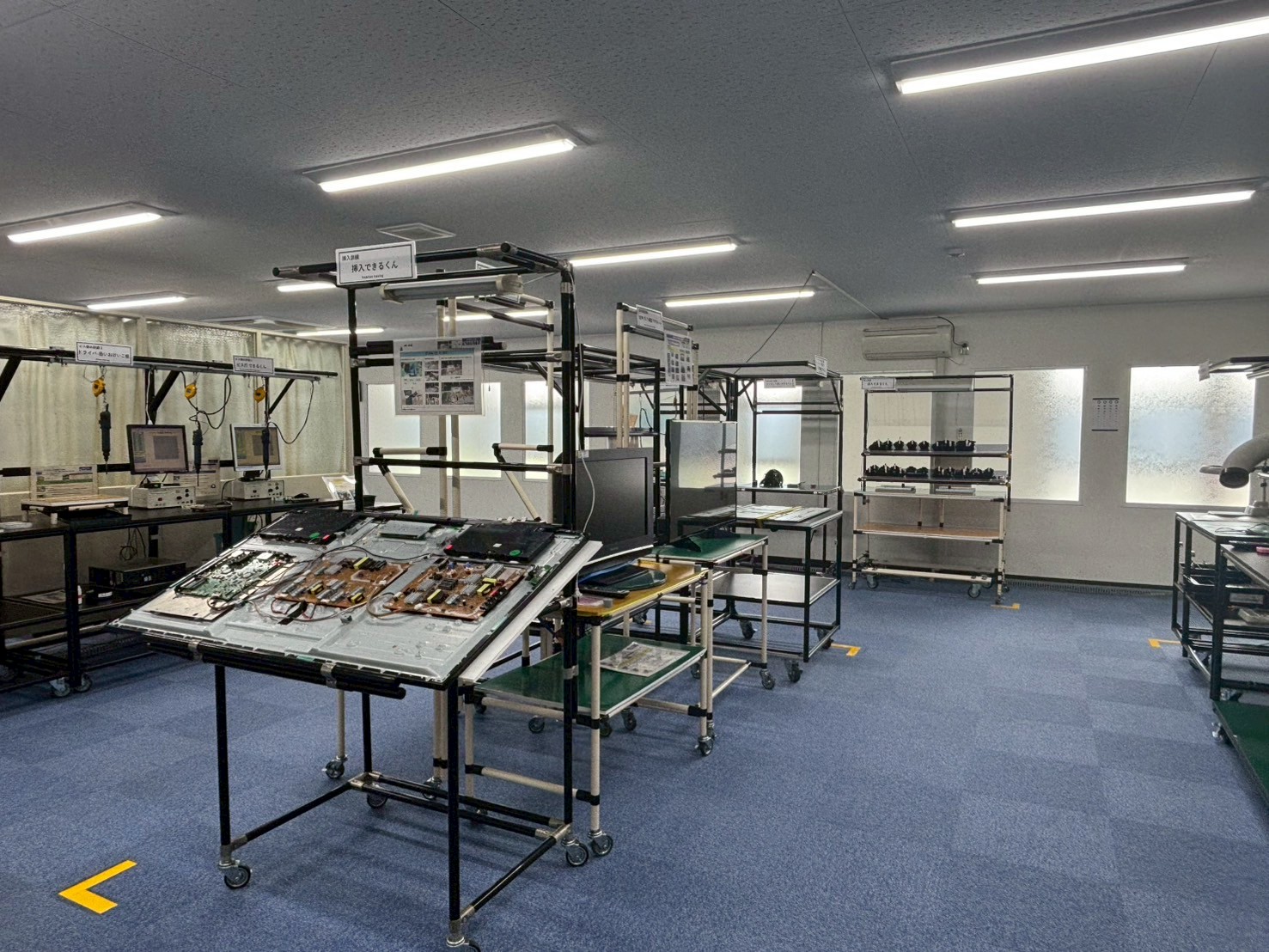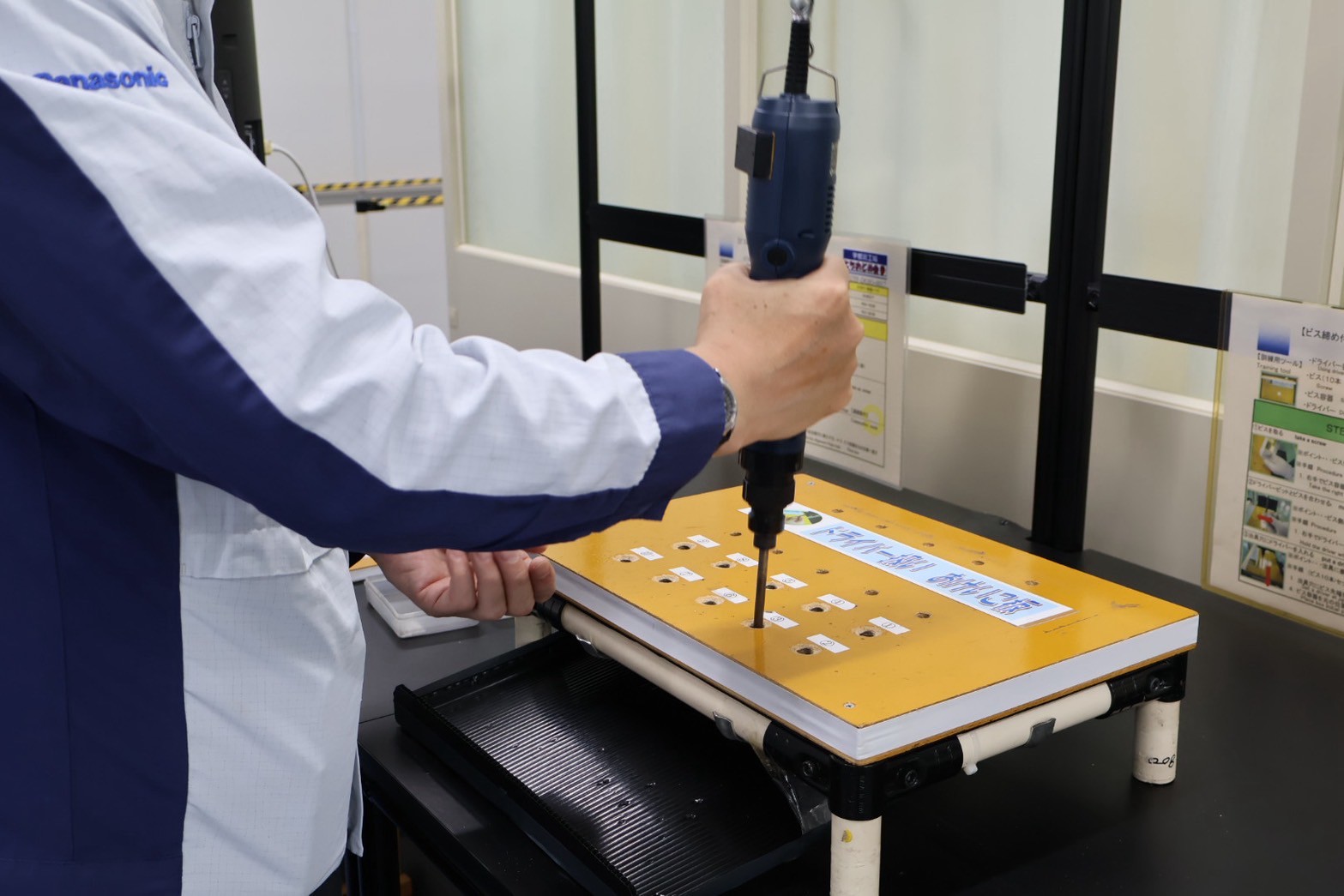 また、実際に工場で使われている訓練用ツールを活用して、一般の見学者もネジ締めや部品の組み立てといった作業にも挑戦可能。ビス締めやドライバーの使い方など、製品づくりに欠かせない基礎スキルを楽しく学べるのが魅力です。