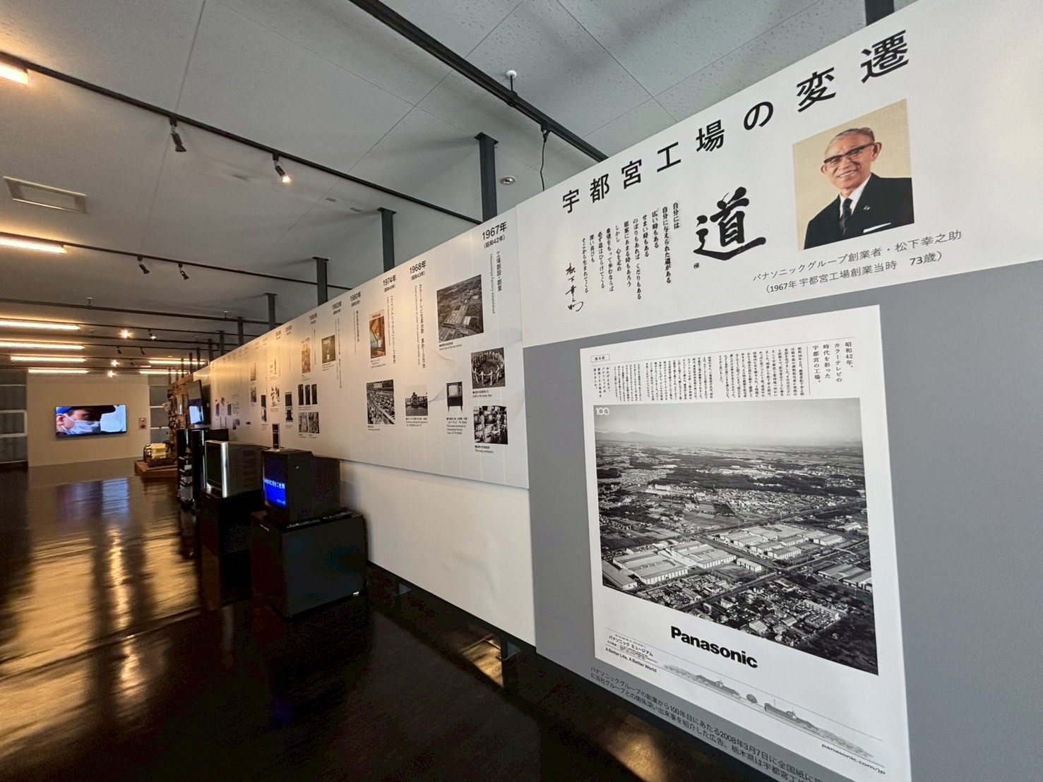 パナソニックや宇都宮工場の歴史を紹介するコーナーも。創業者・松下幸之助氏の哲学は広く知られていますが、言葉の背景を知ることで、当時の想いをより深く感じられます。