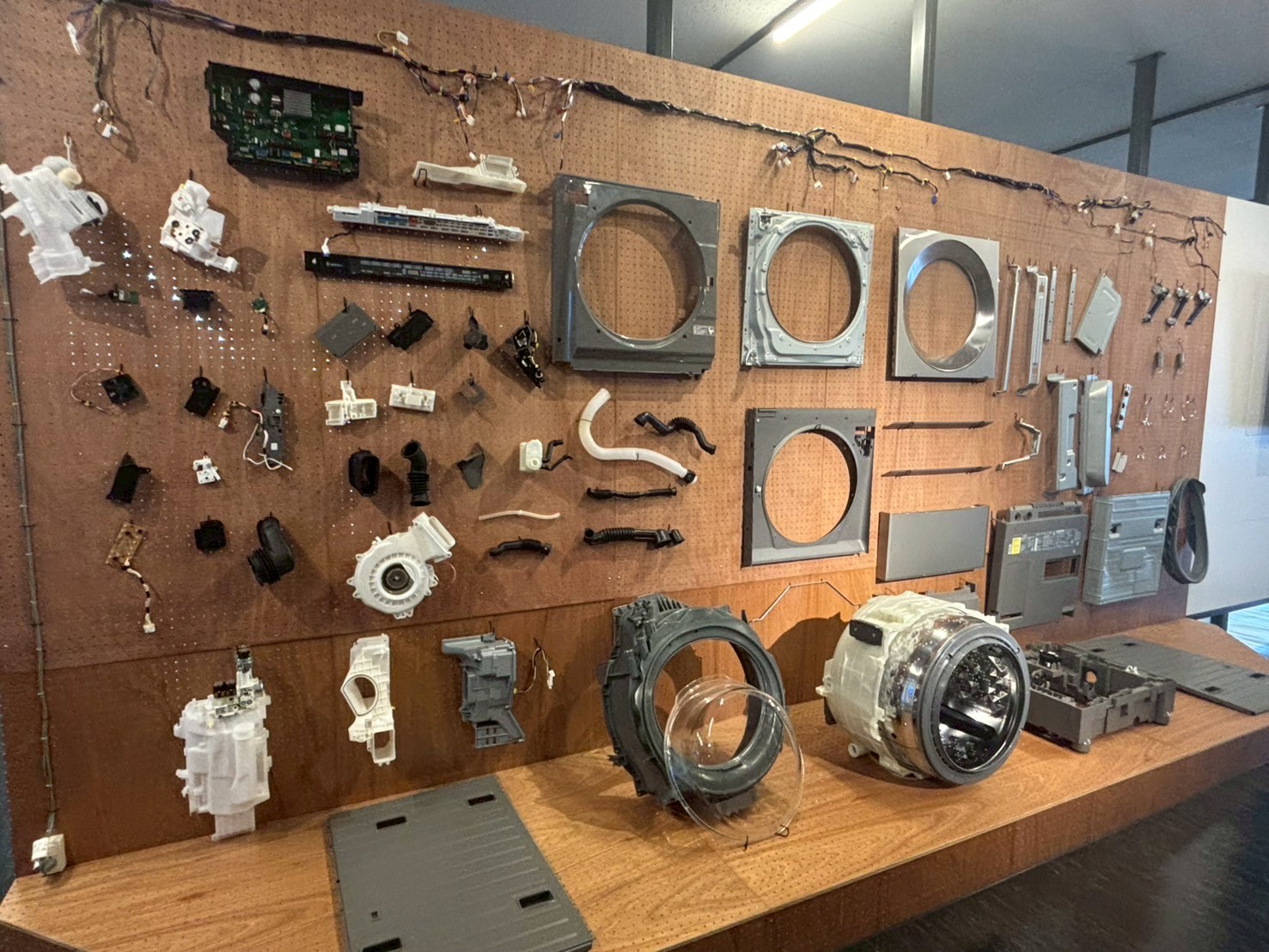 また、ドラム式洗濯機の解体展示は圧巻。約600点の部品で構成されており、これまでは一部が壊れただけでも廃棄・リサイクルされるのが一般的でした。「もったいない」という発想から、該当部品を交換して再生するリファービッシュ事業が始まったそうですが、視覚的にもわかりやすく、強い説得力がありました。