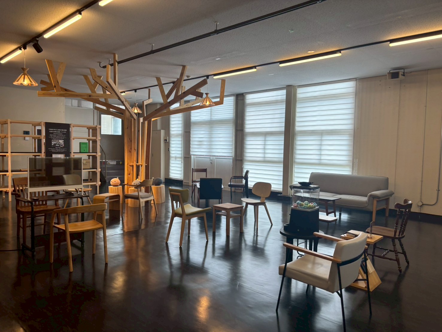 さらに奥に進むと、オシャレなスペースが。こちらの照明や椅子にも環境を意識したこだわりが詰まっているのでぜひ注目してみてください。子どもに嬉しいガチャガチャも待っているのでお楽しみに。