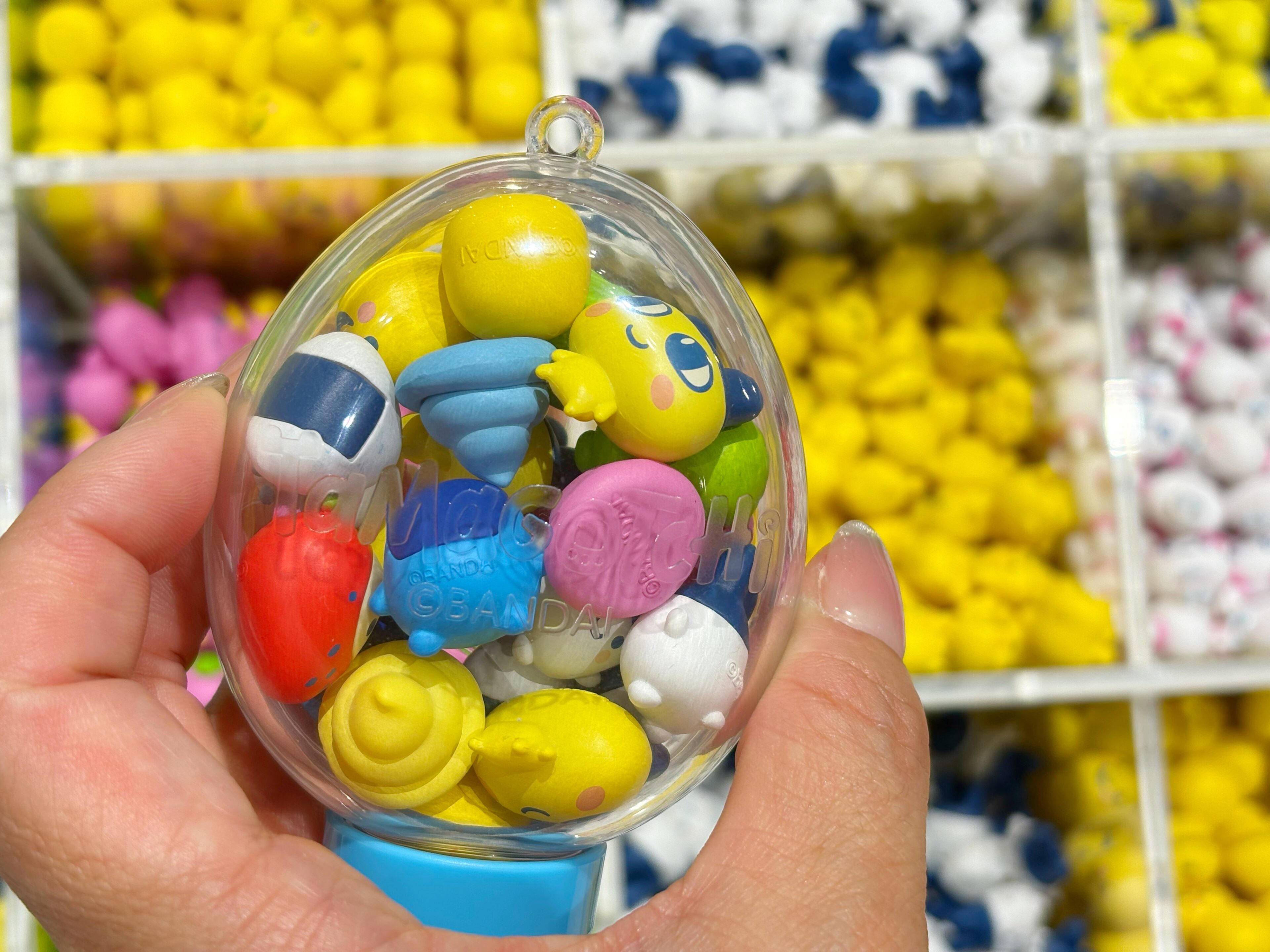 「みにたま つめほ~だい!」専用のミニフィギュアや、たまごっちに登場する「キャンディー」「うんち」「おにぎり」など、アイテムのミニフィギュアを、専用の「たまごっち型ボトル」に詰め放題!まるで、“工場の従業員”になった気分に。
