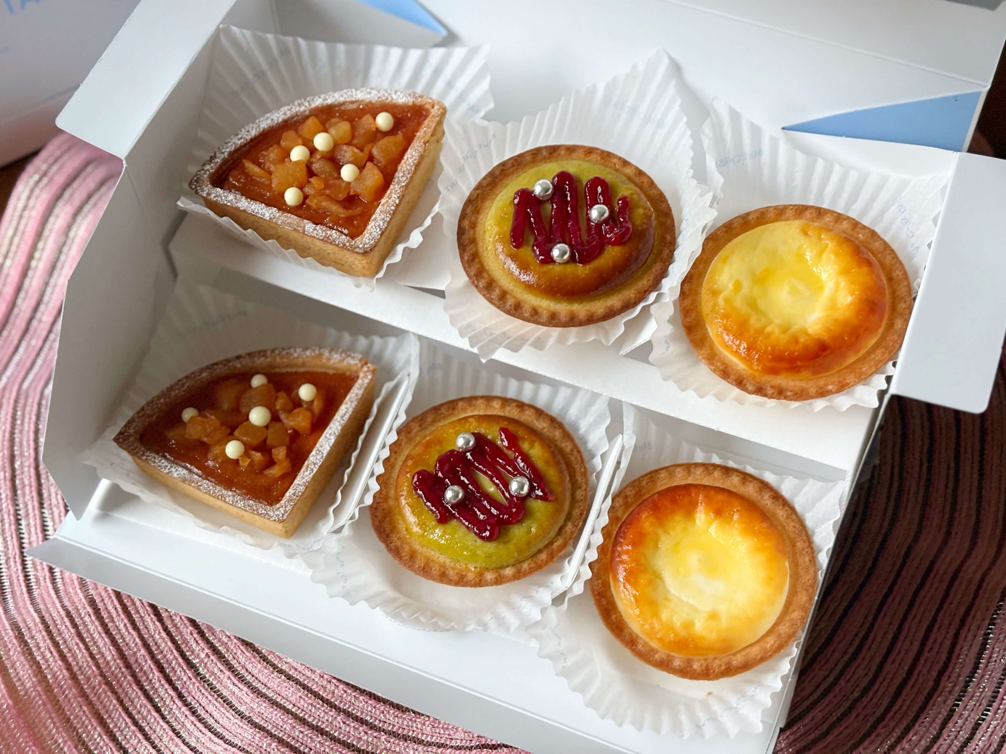 「焼きたてタルト アップルシナモンチーズ」は、4個並べるとホール型に。切り分ける必要もないので、パーティーにぴったりです。ちょっとセンスのよい手土産としてもおすすめ。もちろん、全て単品としても購入できるので、気になった方はぜひ。