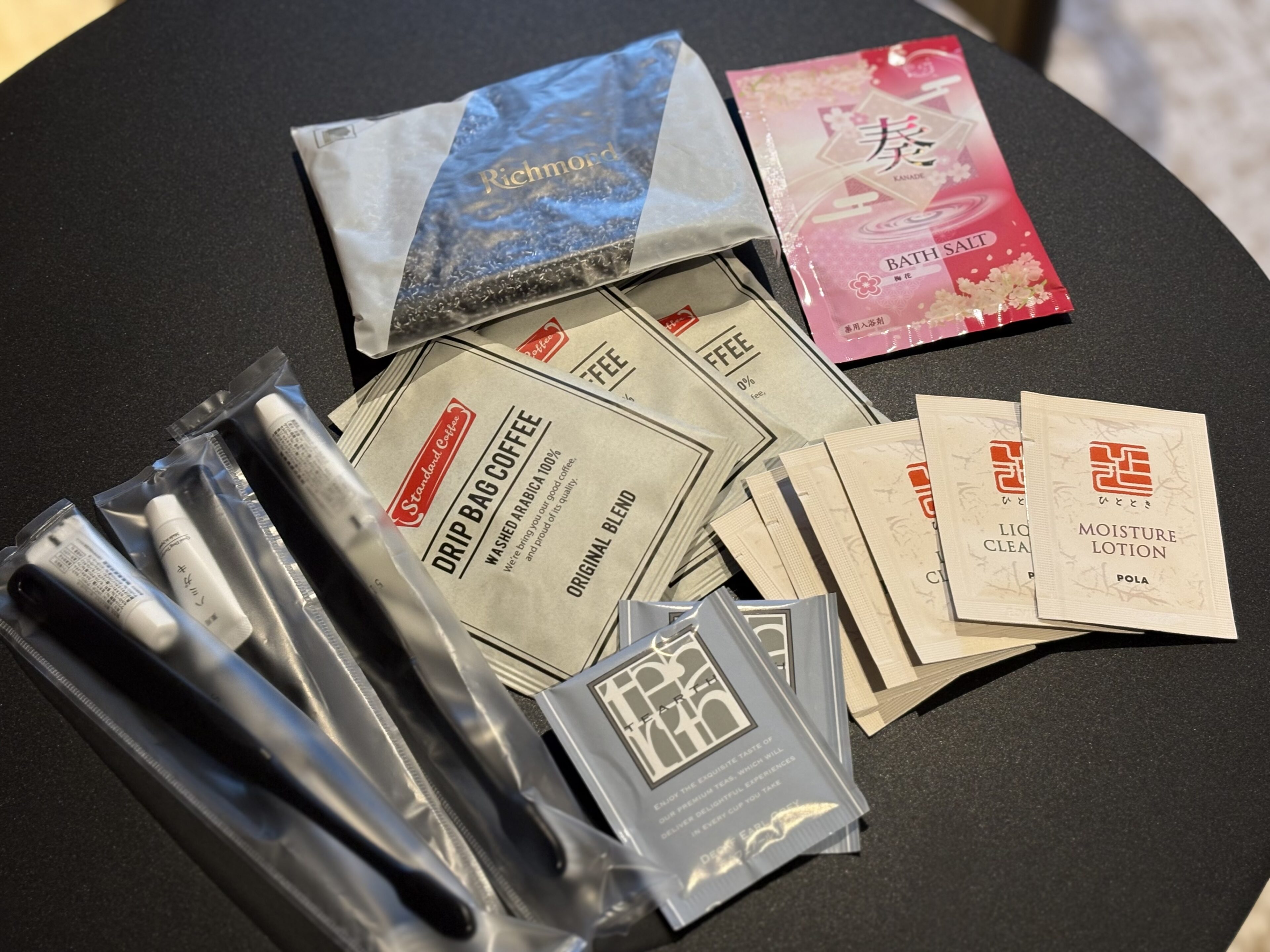 歯ブラシや入浴剤まで。シャンプーなどは備え付けられている。