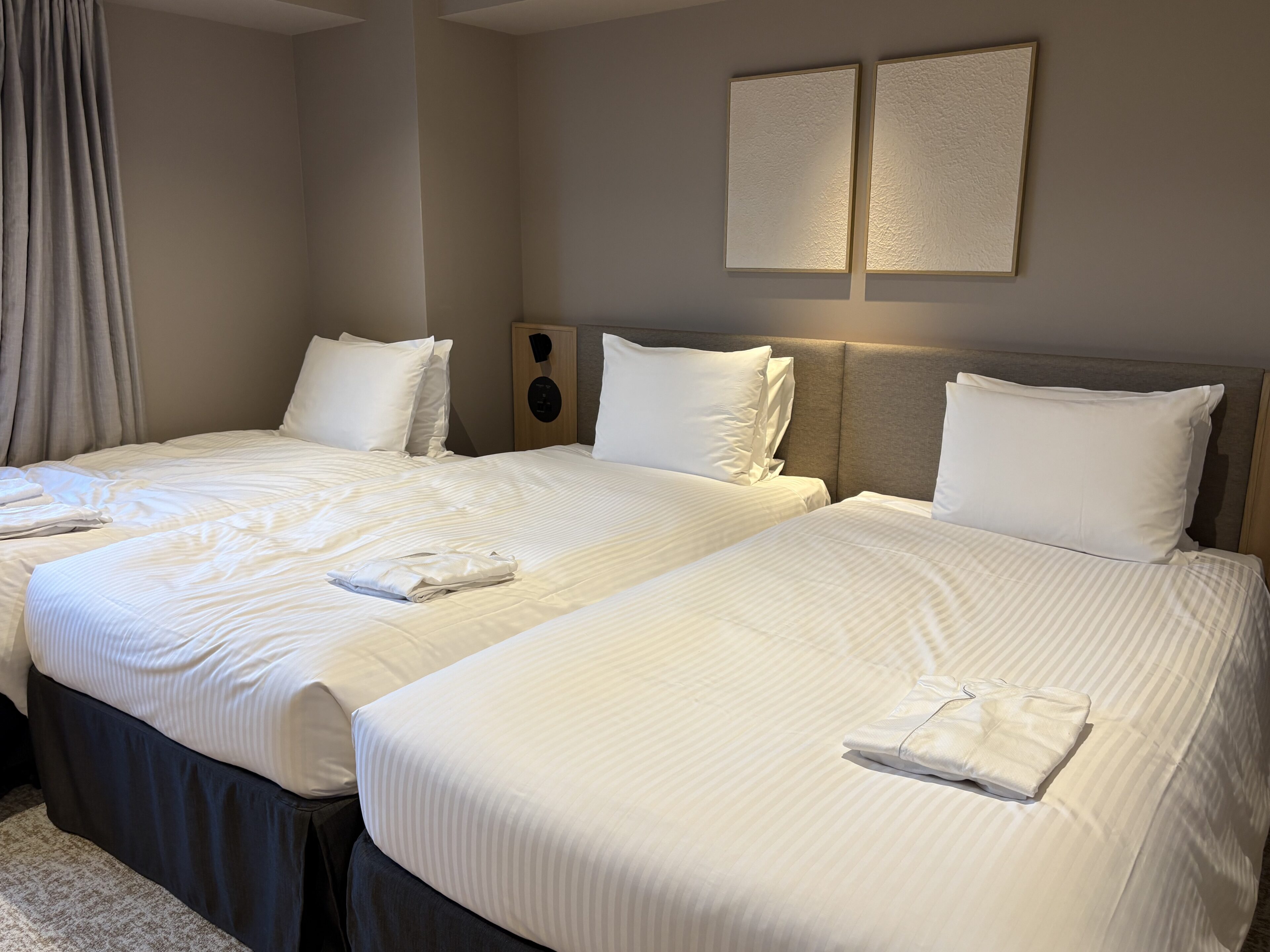 こちらのお部屋には、エキストラベッドを1つ追加することも可能。公式サイトでの予約の場合はツイン3名利用を選択、もしくはホテルにお問い合わせを。