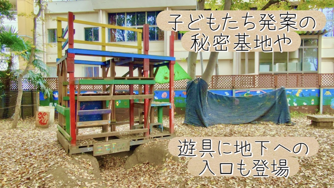 遊び場自体も子どもたちのアイディアで日々変化しているそうで、子どもたちが「秘密基地を作りたい」と言い出した時には、閉園日でも出しておける形状や材料選び、作った子どもたちだけで占有はしないなどのルールを、スタッフと子どもたちで話し合って決めたのだそう。