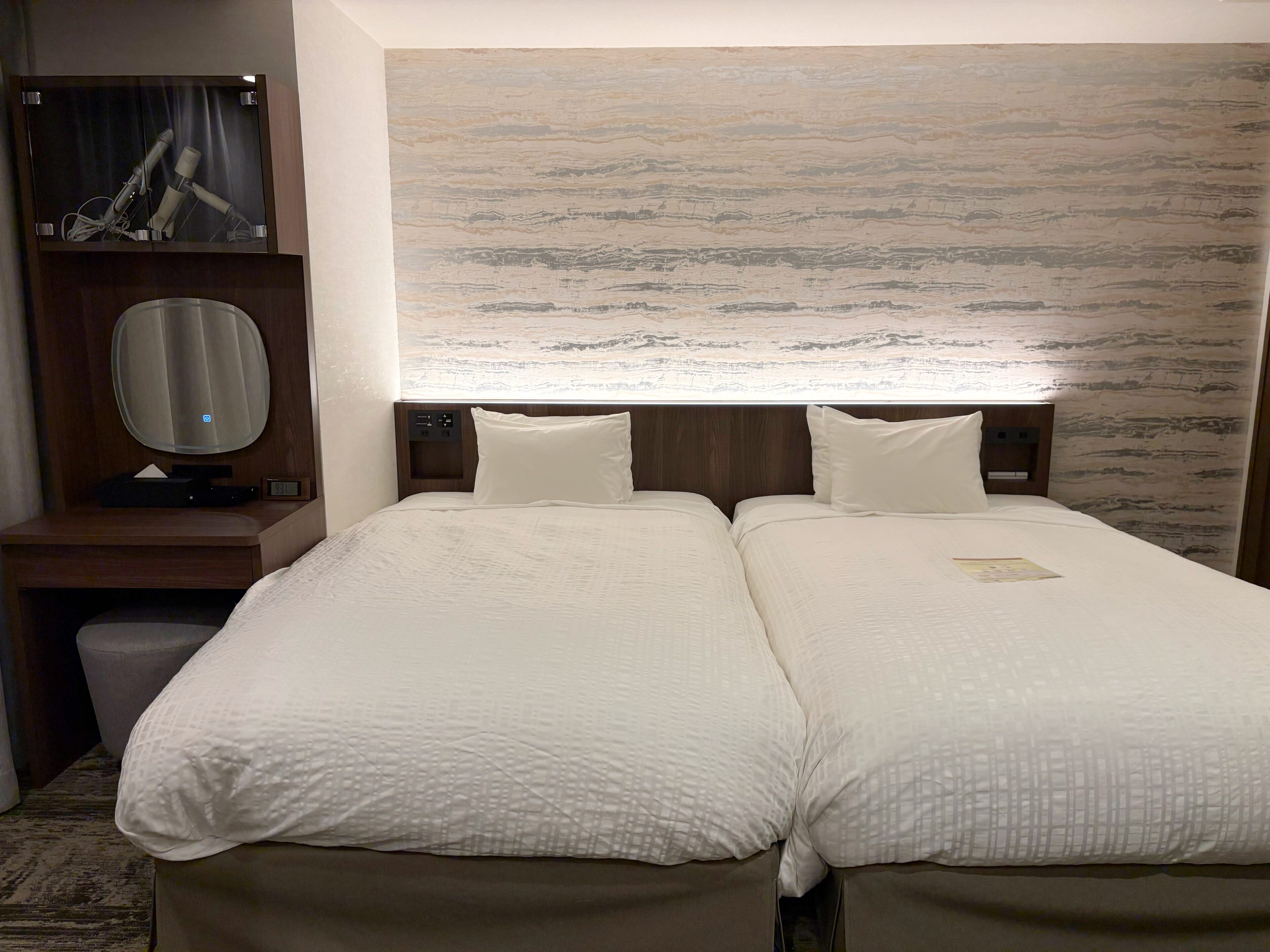 「エグゼクティブラウンジ」を利用できるのは、16階のエグゼクティブフロアの宿泊者のみ。今回、私は2025年に改装したばかりという「エグゼクティブフロア デラックスツイン」に宿泊させていただきました。