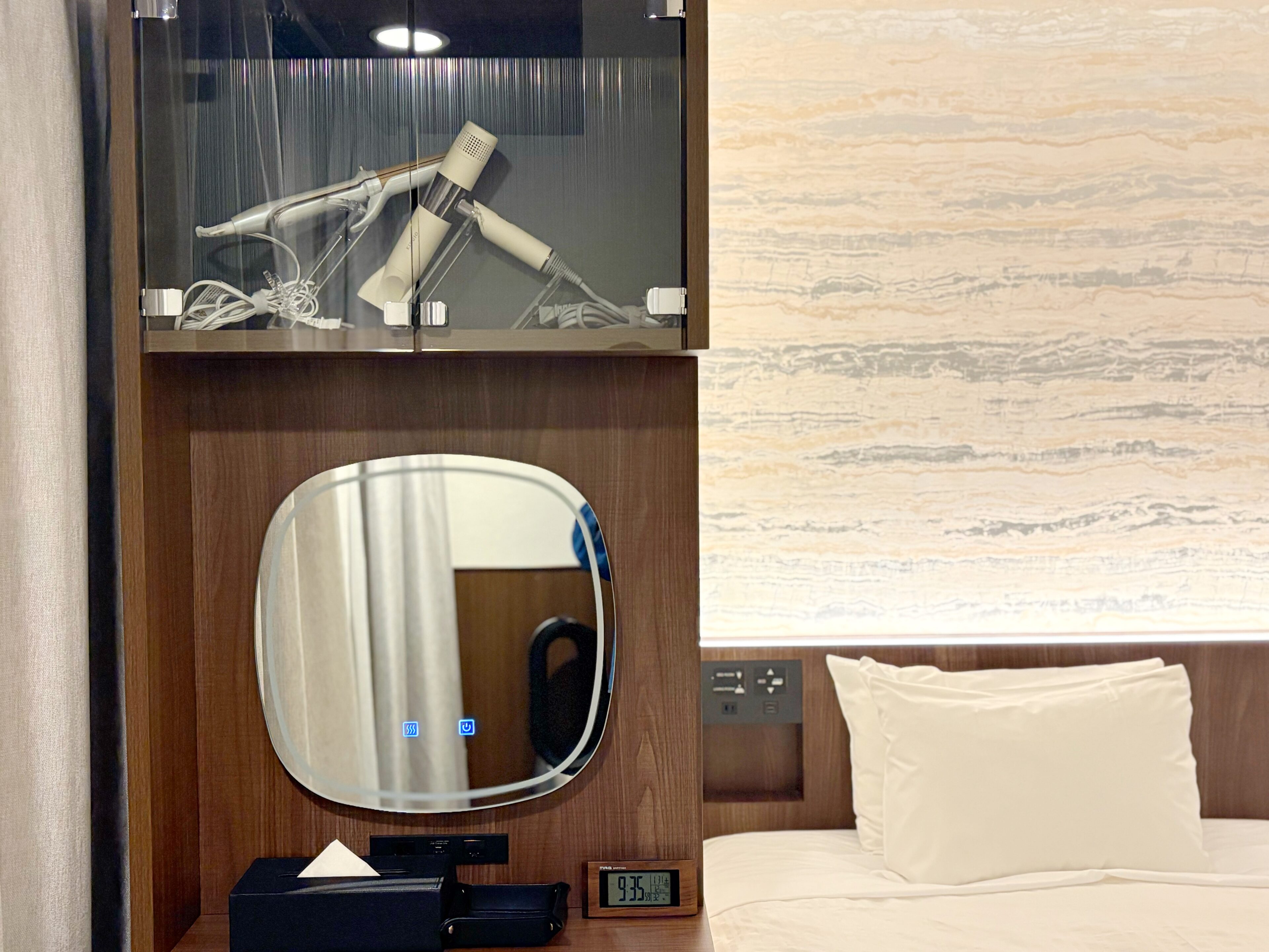 ママ必須アイテム!独立した化粧スペースには、ヘアアイロンまで。