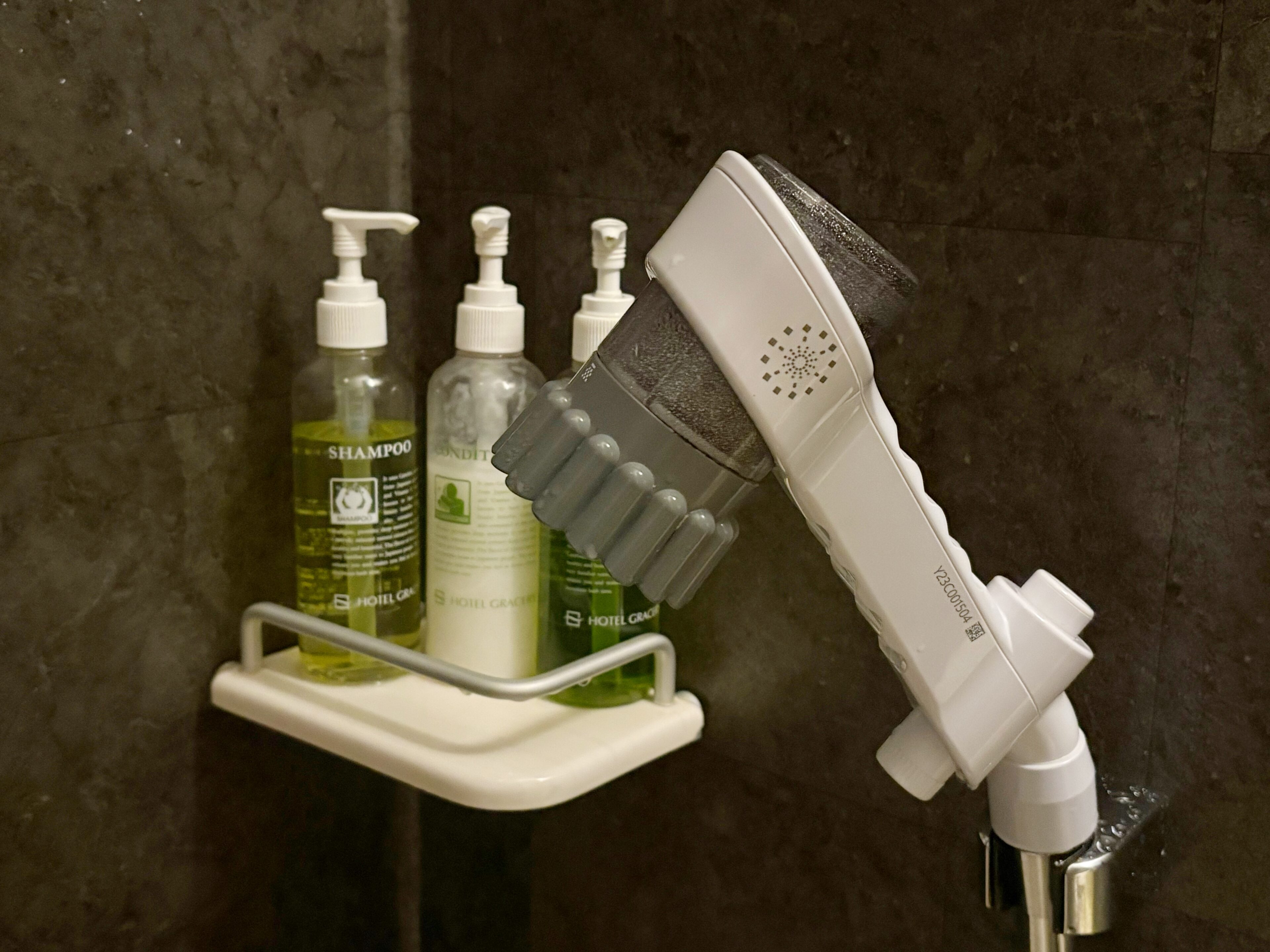 シャワーヘッドも3段階に水圧を変えられるタイプ。