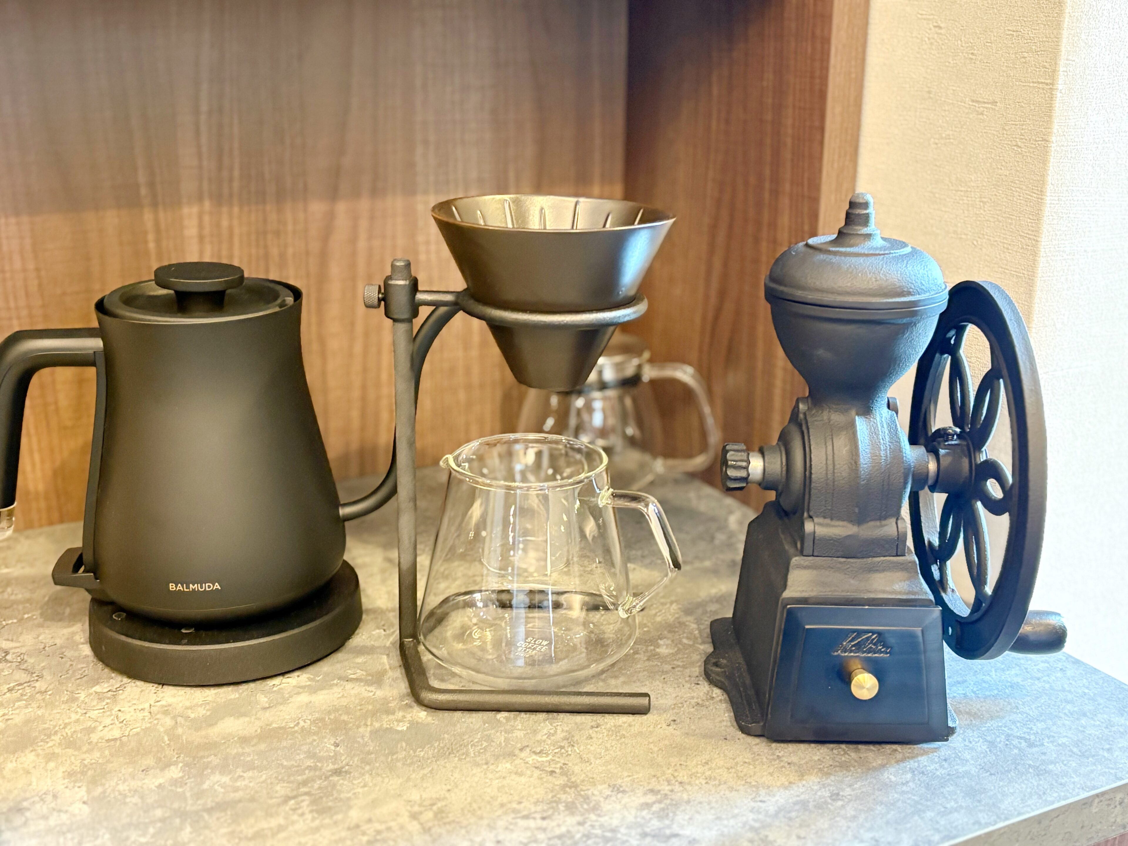 ウェルカムスイーツと、淹れたてを楽しめるコーヒーセットが用意されている。