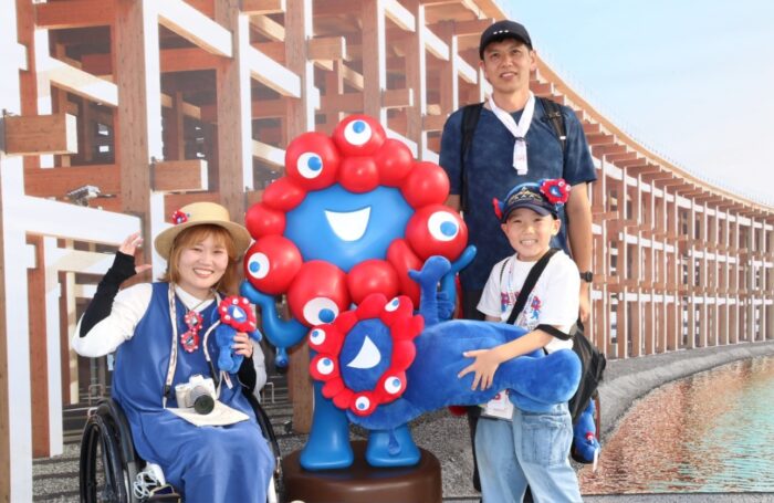 今回、乗車したのは青色のトレイン!にっこりとした表情が可愛らしく、美理ちゃんも顔真似をしたりして、乗車前から楽しんでいました。トレインは、ピンク色もあり、どちらが来るのかは乗車時までのお楽しみ。