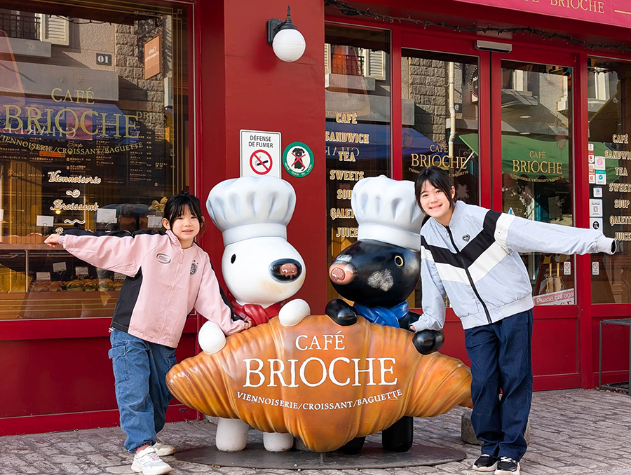 ホテルの裏口を出ると、「リサとガスパールタウン」という土産物屋などが立ち並ぶエリアが広がっている。開園前の時間帯はお店もまだ開いていないが、欧州風のメルヘンな街並みの中、キャラクターのオブジェなどが点在しているので、ゆるゆると写真撮影を楽しんだ。