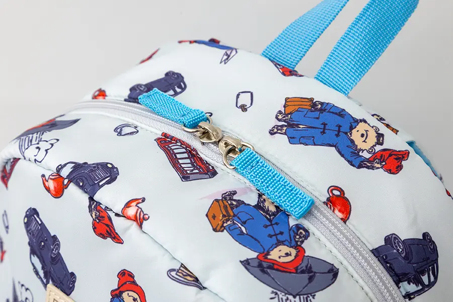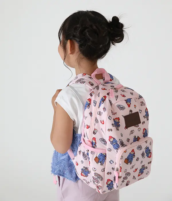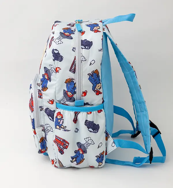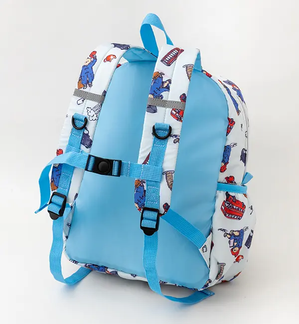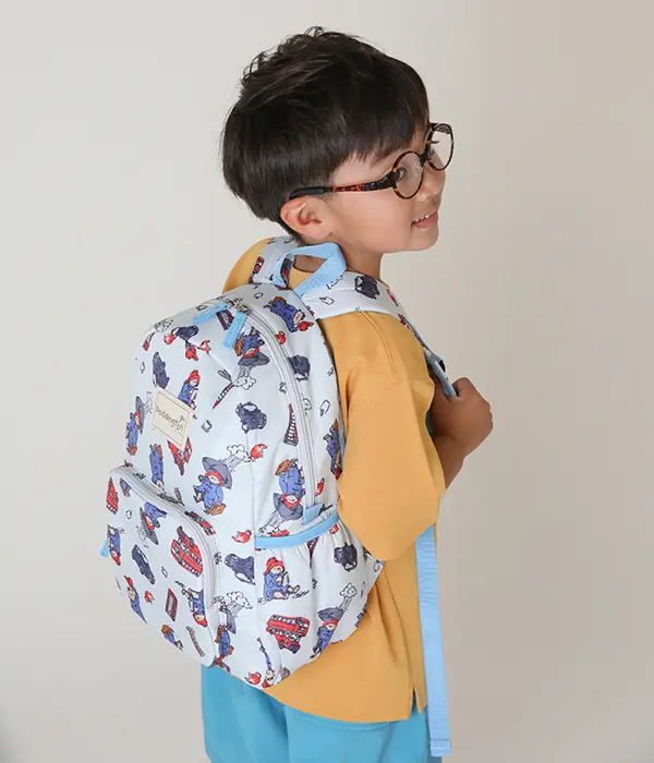 やさしいカラーで総柄のパディントン™がとってもキュートな子ども用リュック。親子にうれしい工夫がたくさんつまっています。